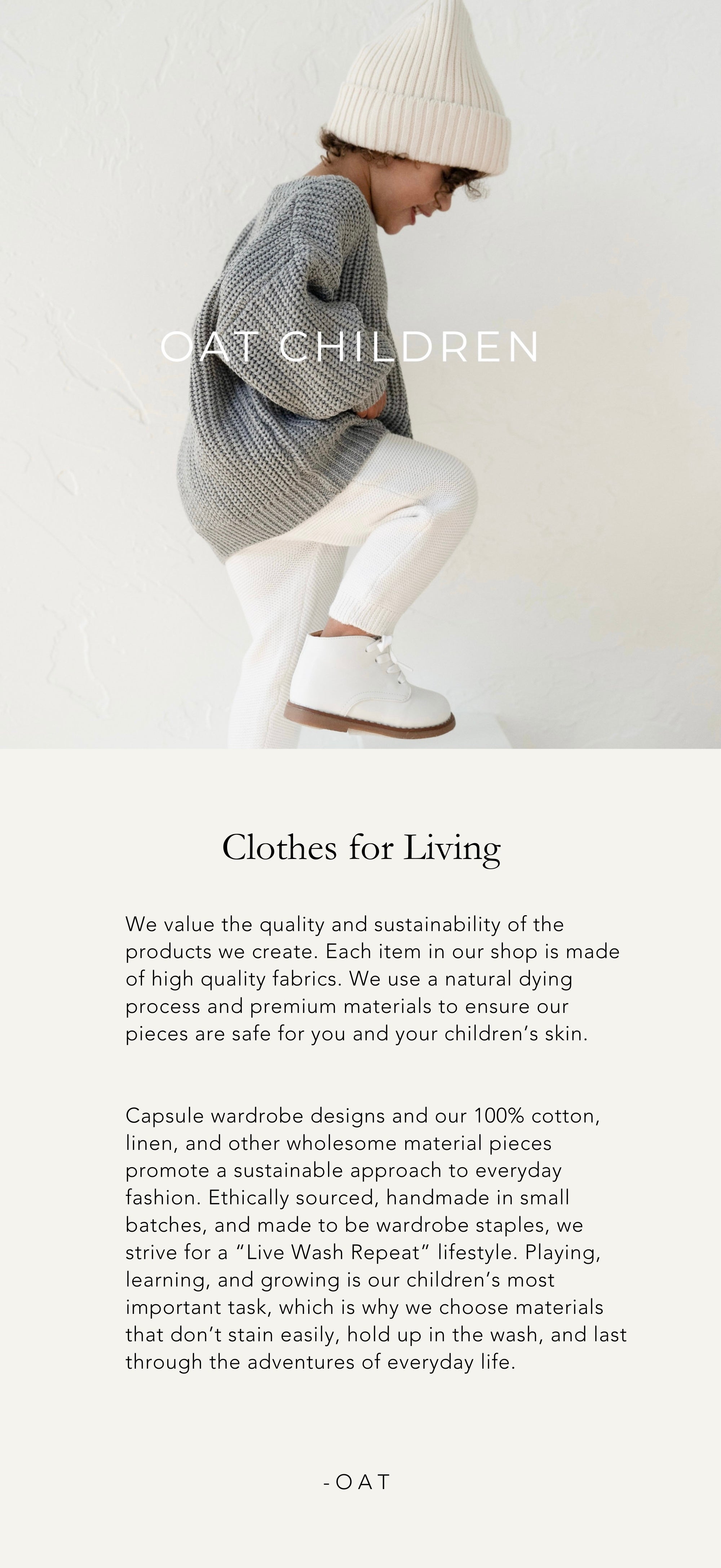 " Oh, how we love OAT! My baby girl is now 1 years old and has been wearing Oat since she was just a few months. She has had so many milestones in our tried and true Oat staples. "