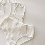 These smocked bottoms have the perfect high waisted cheeky fit for a gorgeous appearance. The smocked material ensures that they are flattering on all body types. Fully lined with the softest swim material for comfort as well as to prevent sheerness, these swim bottoms are going to be your new go to for the summer.