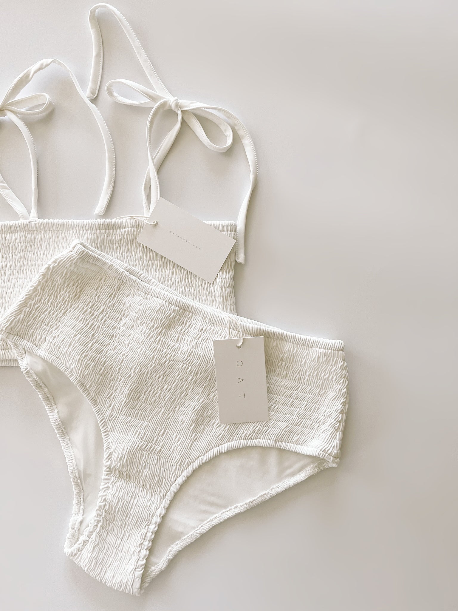 Women’s High Waisted Smocked Bikini Bottoms - Coconut