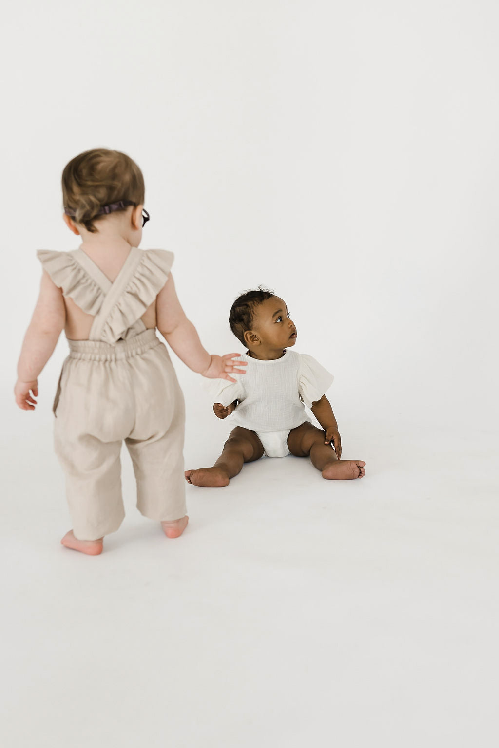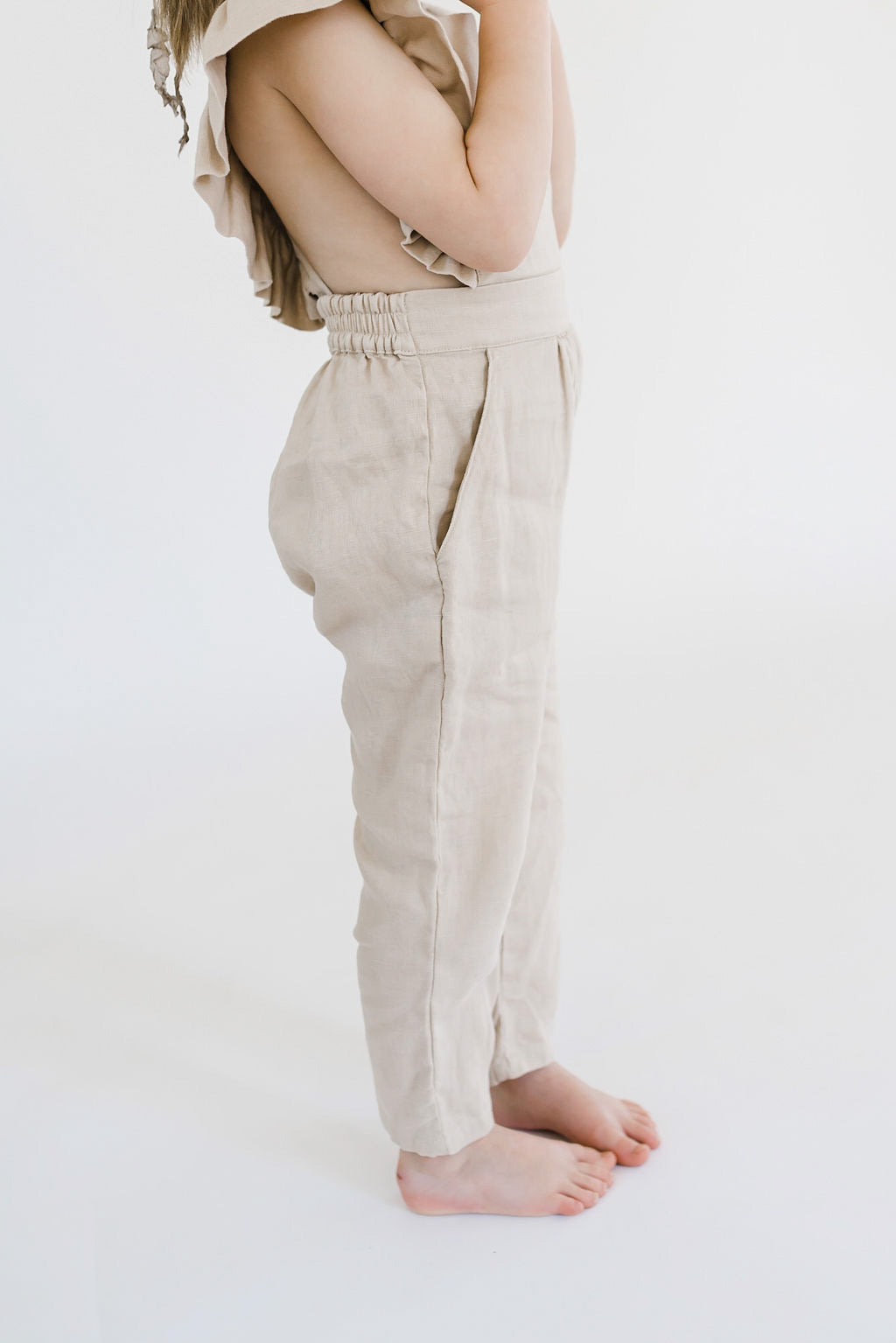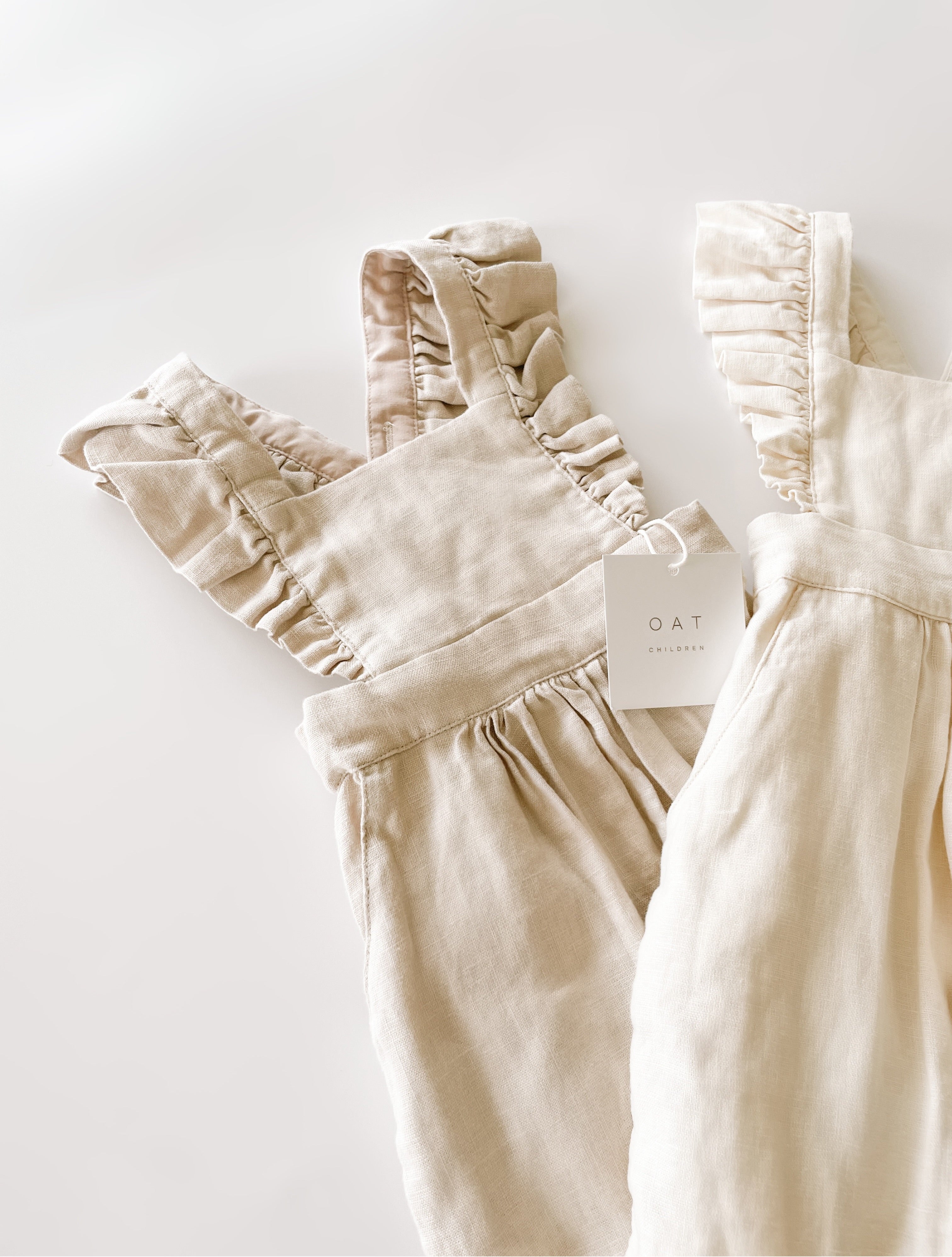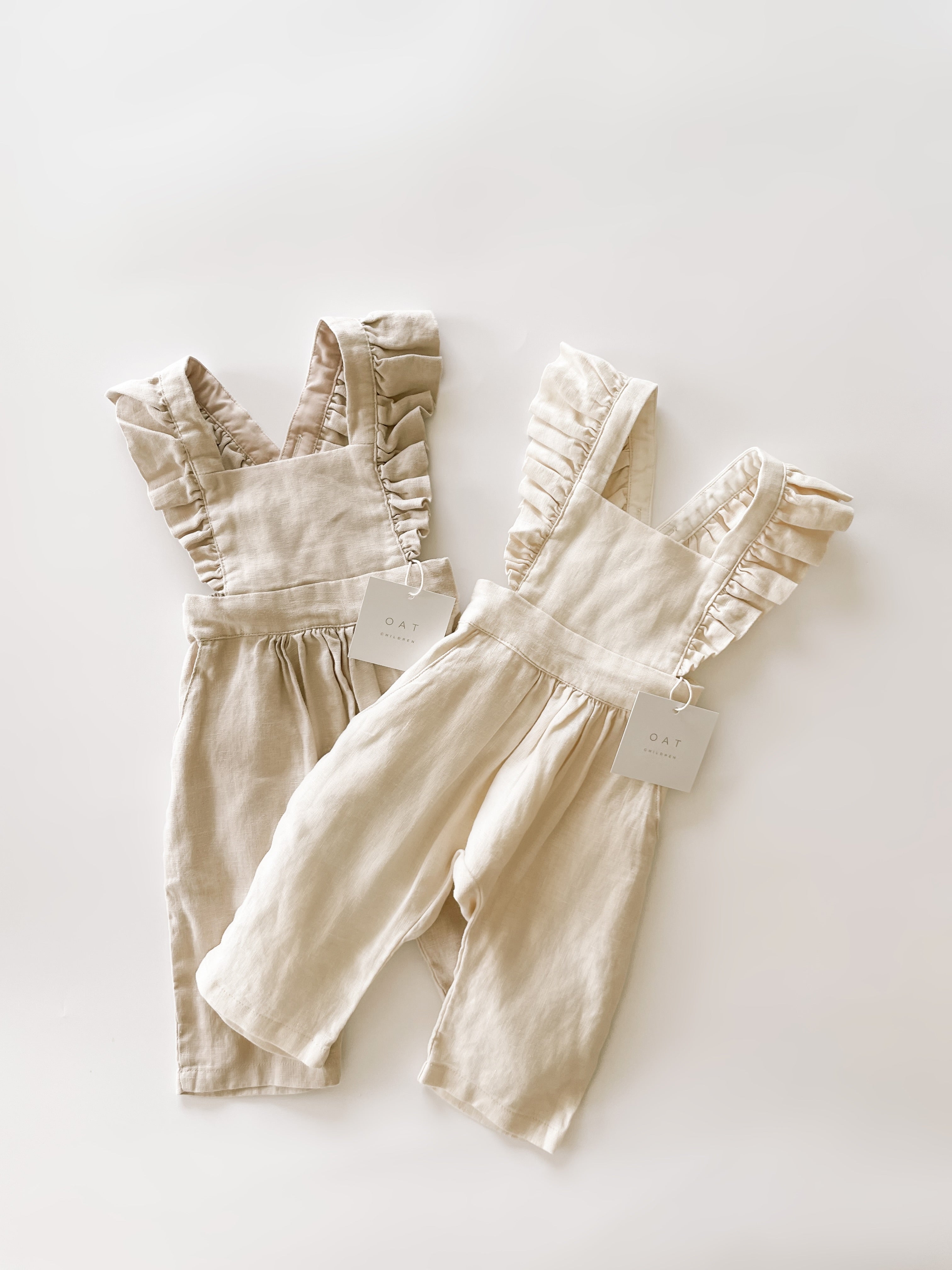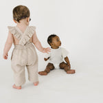 Our linen jumpsuits come with 4-6 button holes that make it easy to adjust the jumper to fit your little one's body. These pieces fit true to size. Order your little's normal size.