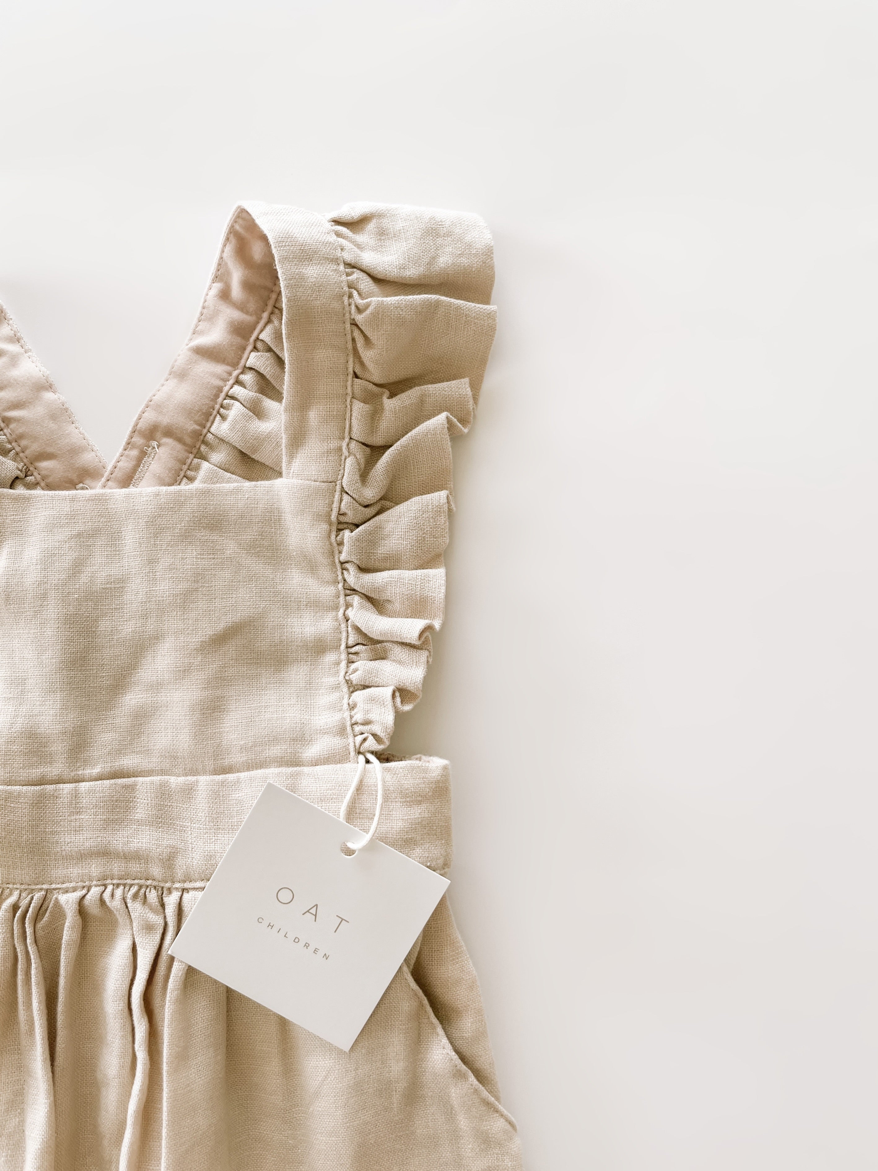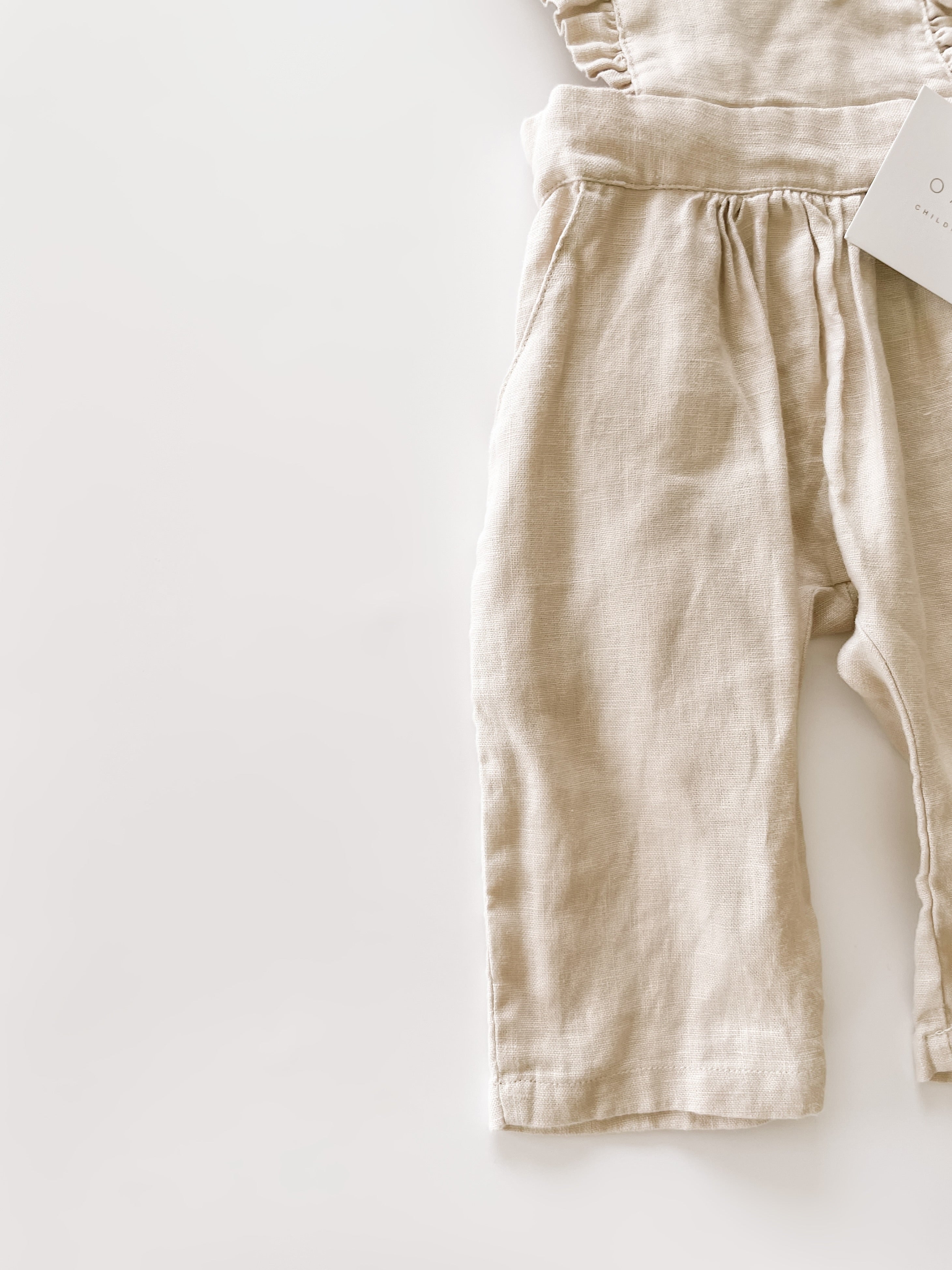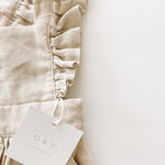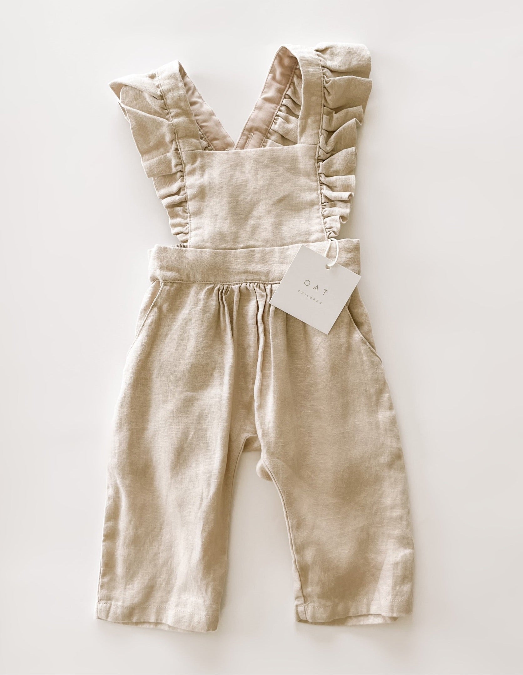 This high quality linen jumpsuit is as strong as it is beautiful. With 4-6 adjustable button straps for the perfect fit this flutter sleeve jumpsuit will leave your little one feeling beautiful and timeless. The embellished straps bring a sense of summer charm to this functional wardrobe staple. It’s an absolutely lovely classic that’s perfect through all warm weather months.