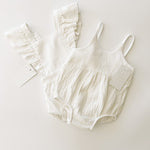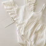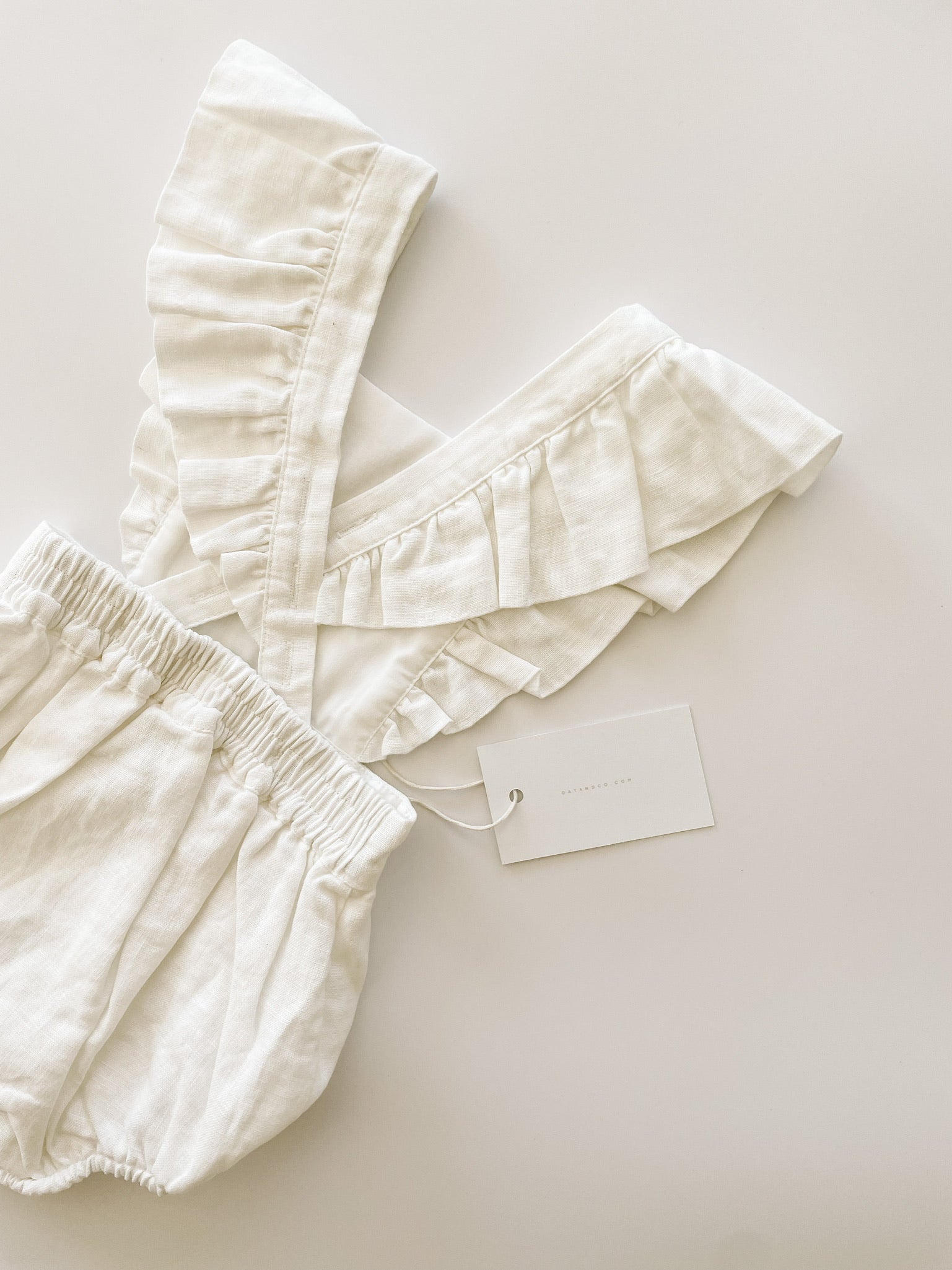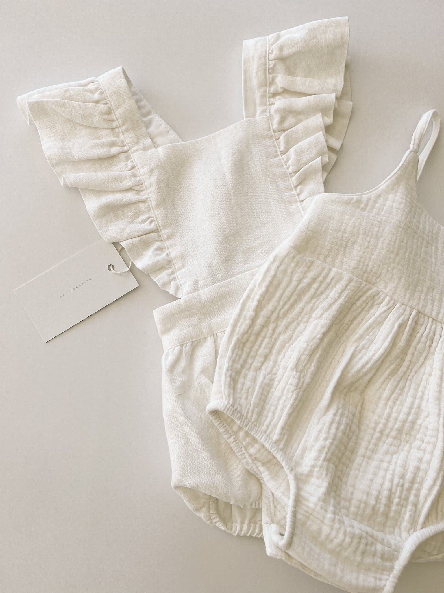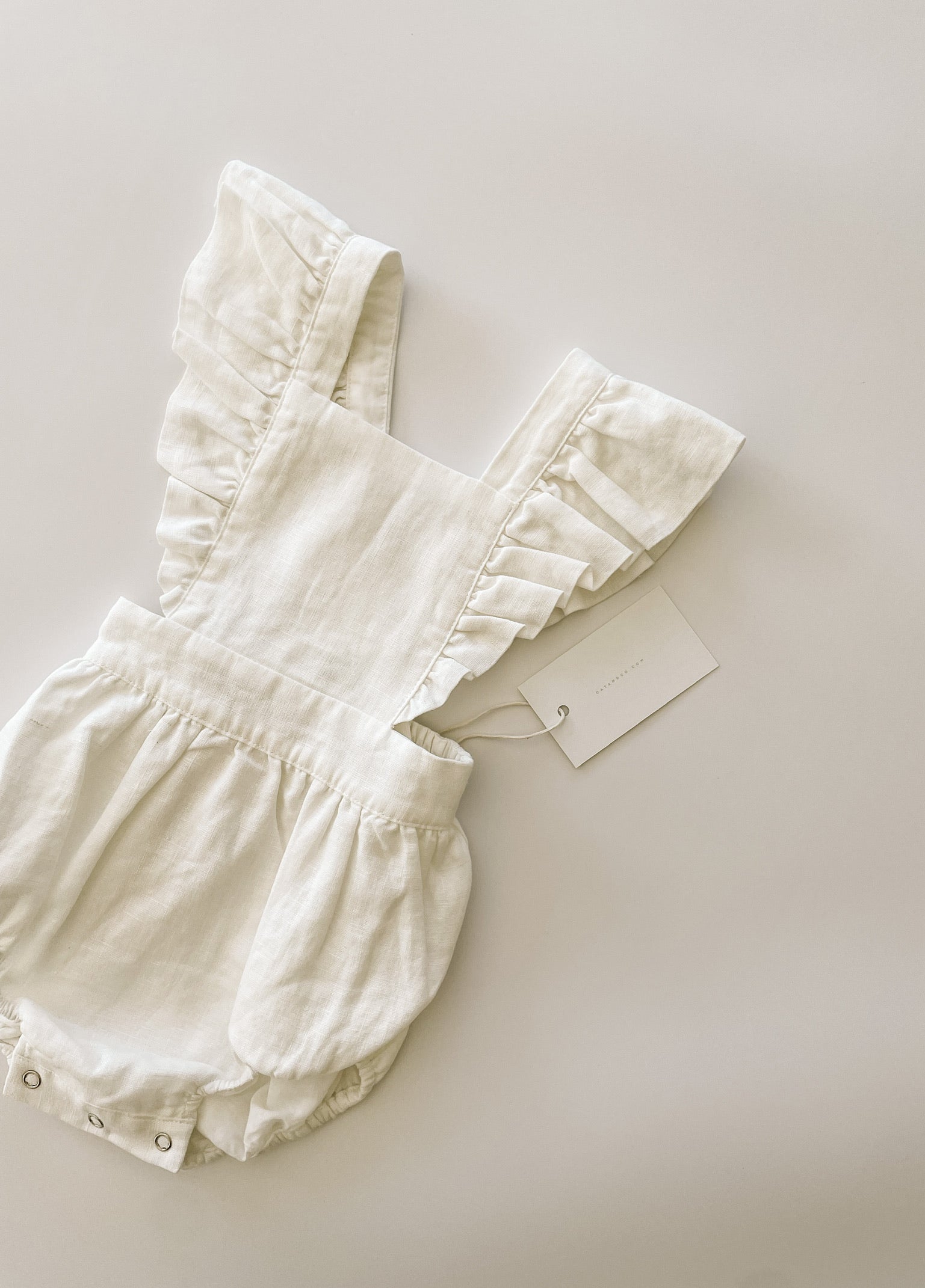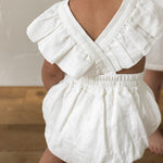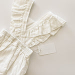 Linen Flutter Sleeve Bloomer Romper - Ivory