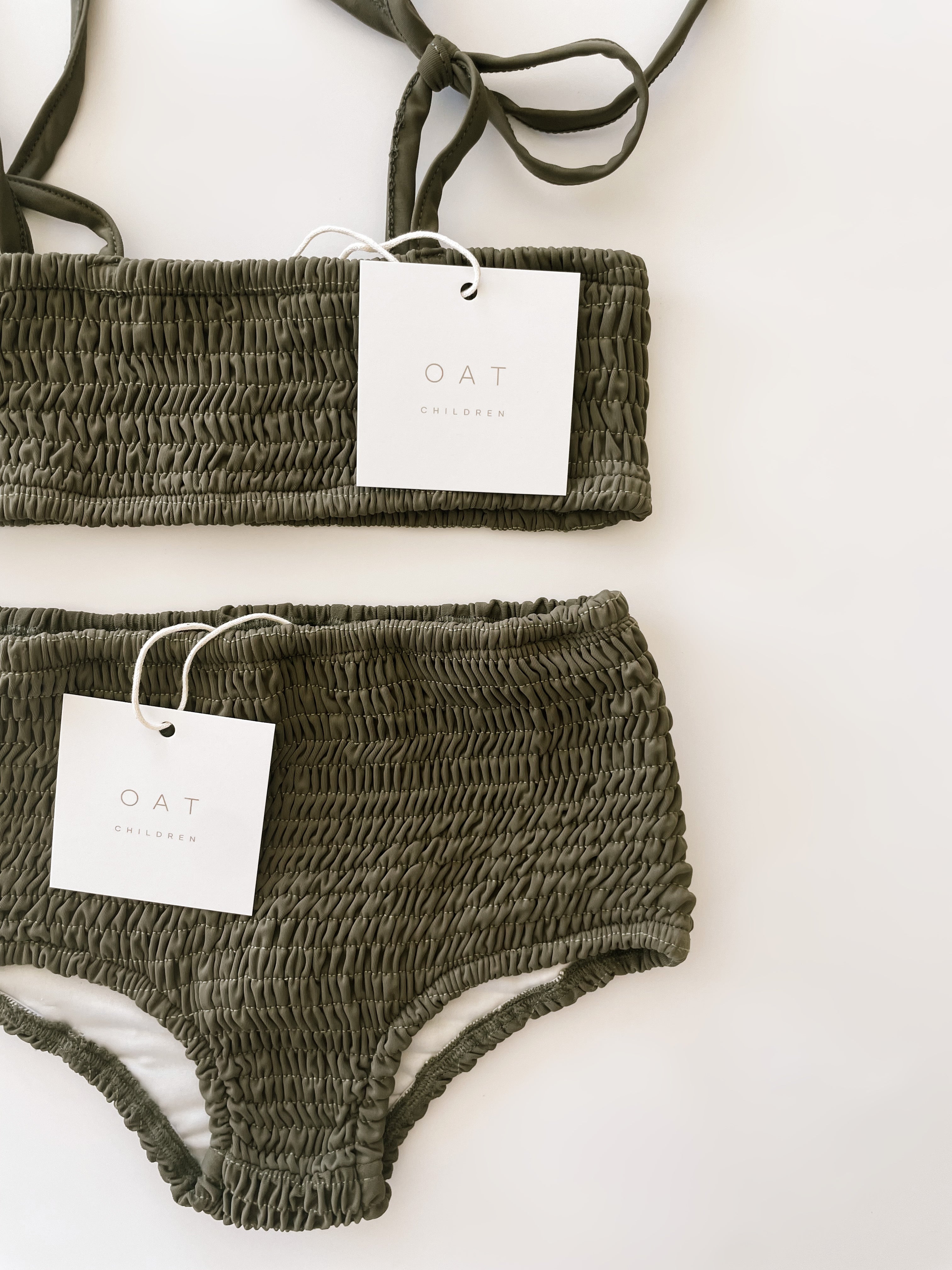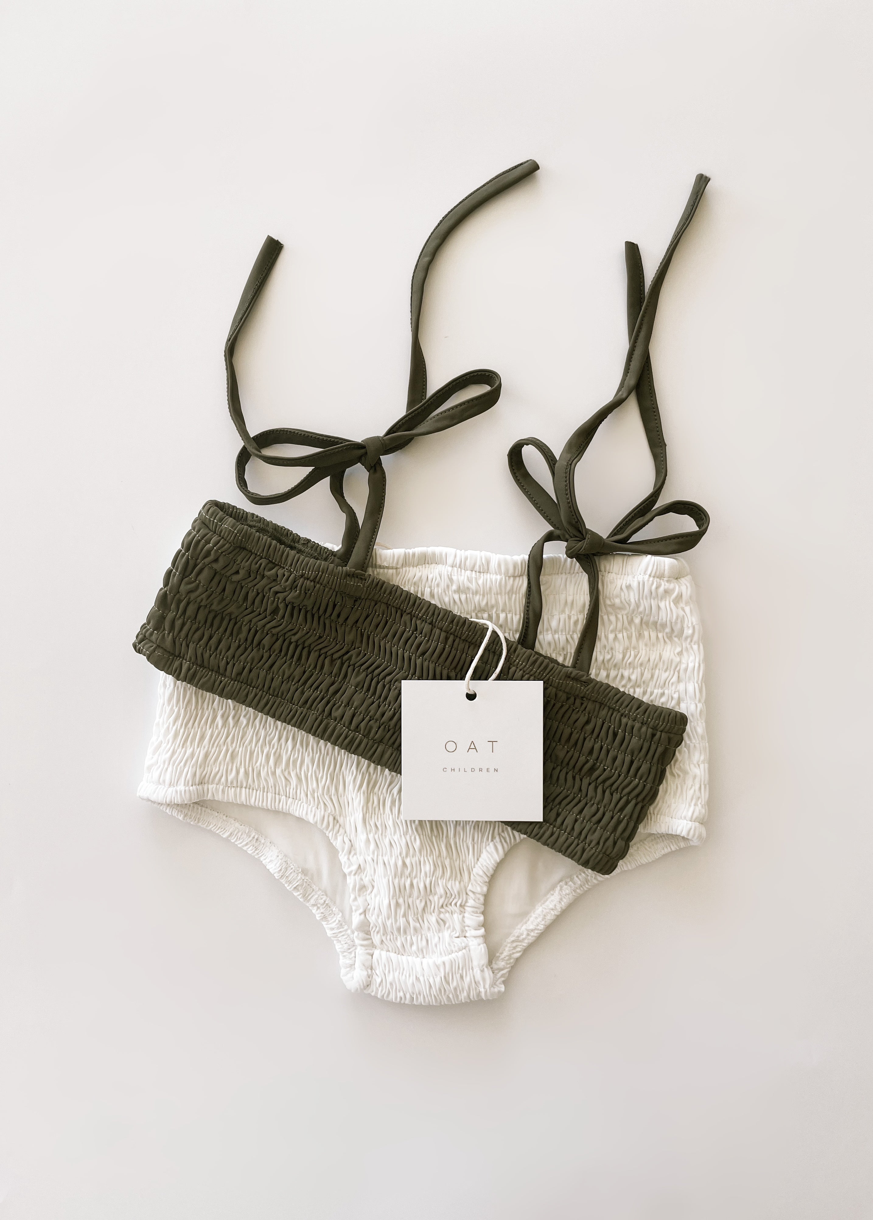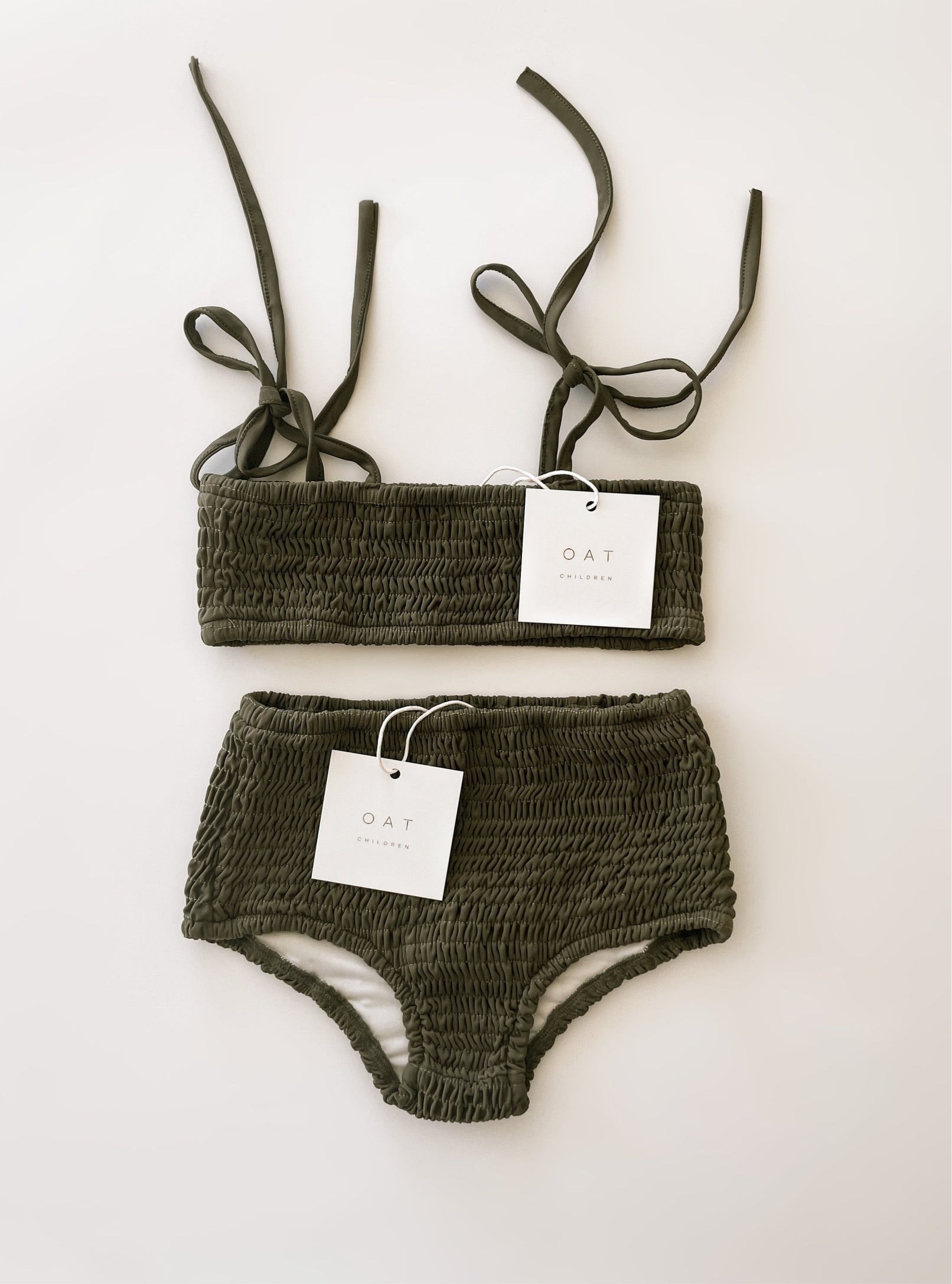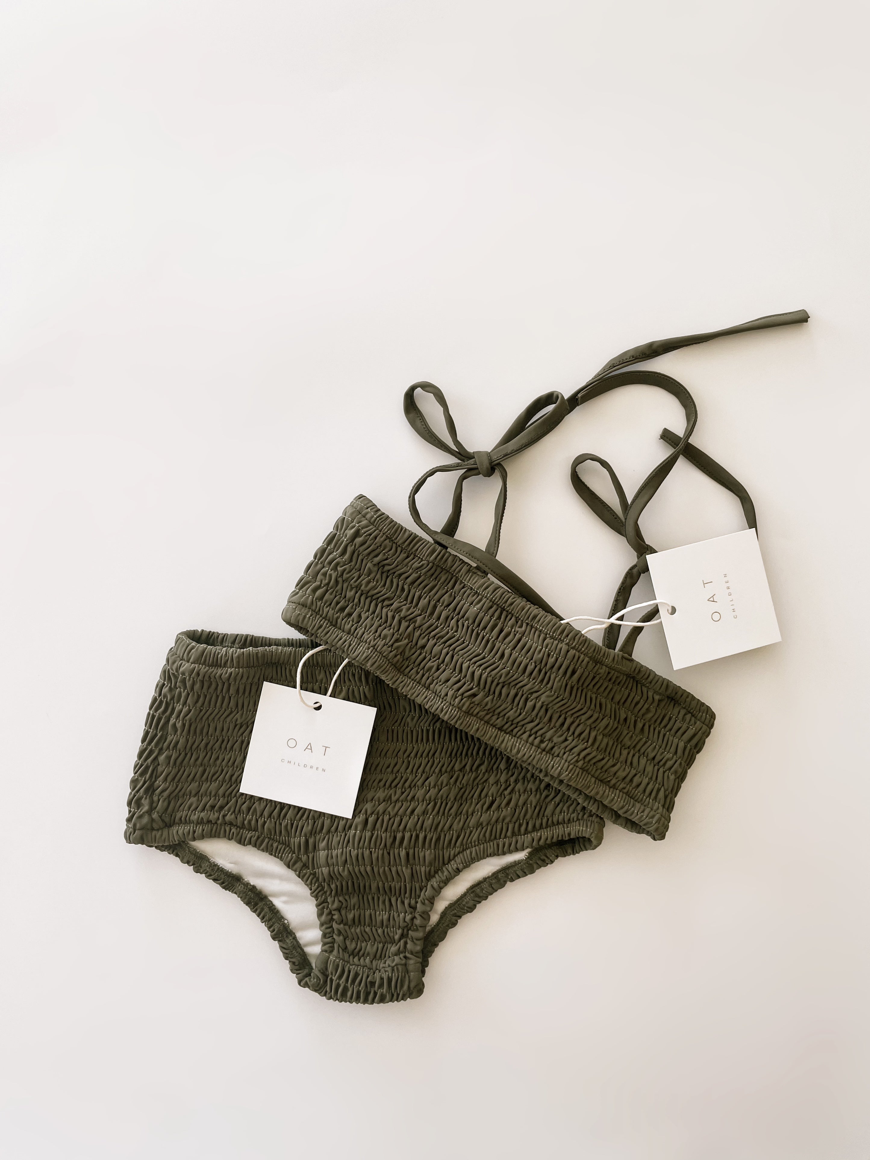 Summertime dreams! This smocked bikini top is the perfect swim piece for their summer wardrobe. It's an absolutely timeless capsule piece made for beach days and pool lounging. Made of soft material and fully lined for ultimate comfort and quality. The material gives both the tops and bottoms an amazing amount of stretch making them extremely versatile.
