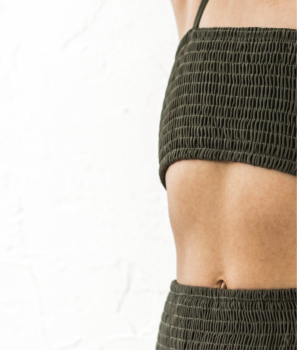 Pair with the ' Smocked High Waisted Bikini Bottom ' for the full swimsuit.