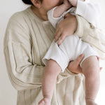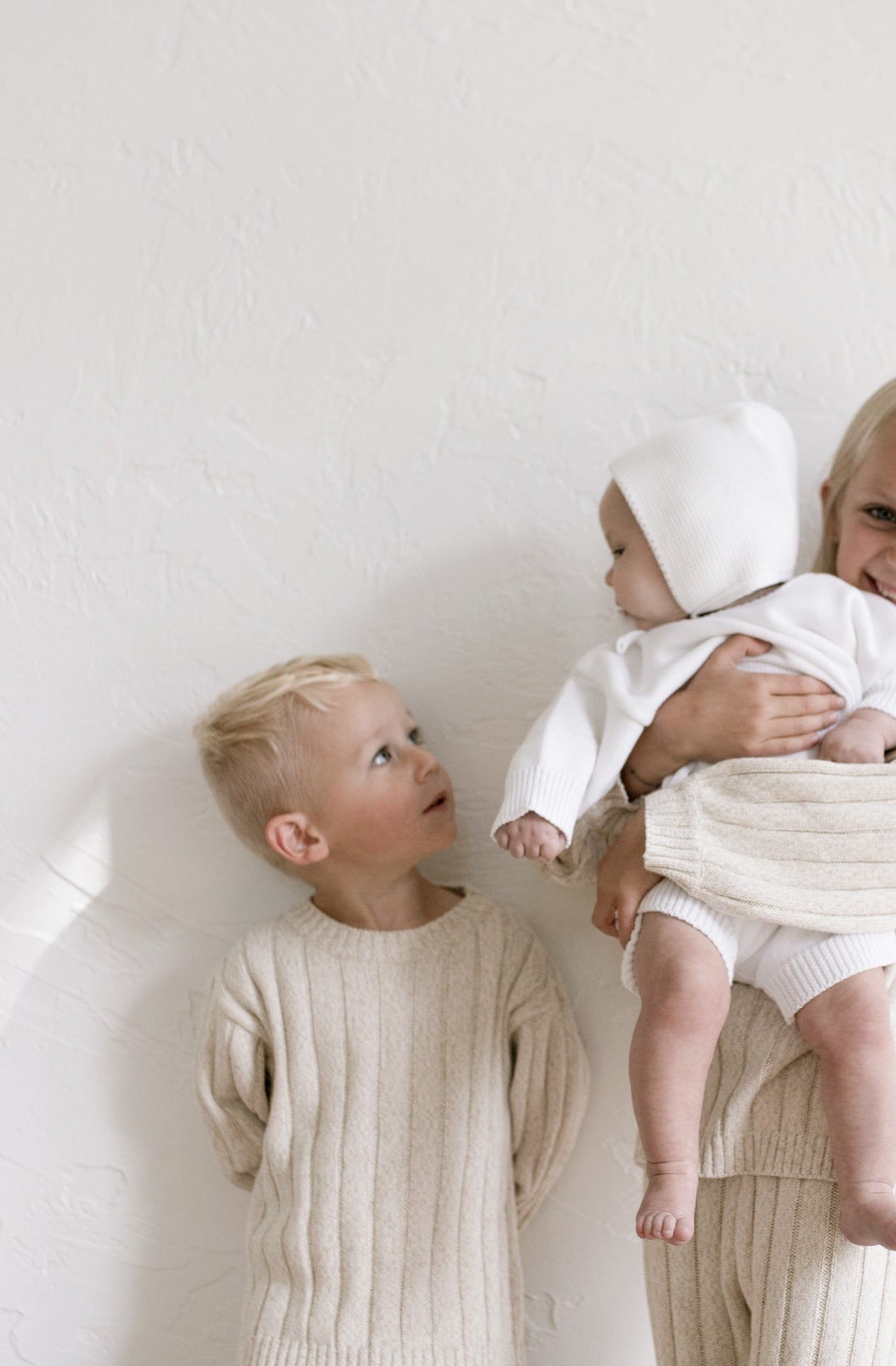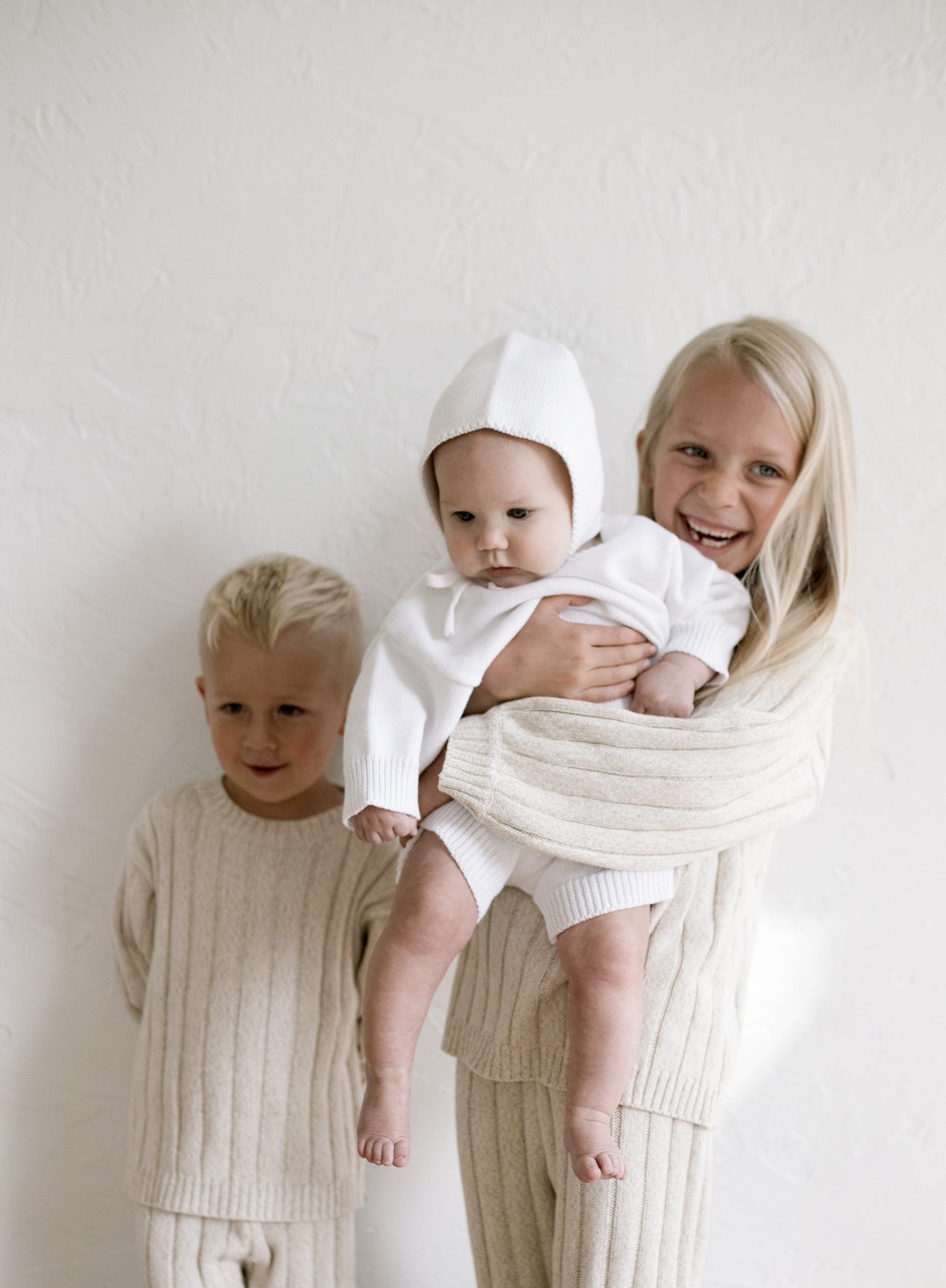 This beautiful children’s piece is a minimalistic dream. Less is more when it comes to clothing that goes well with everything and makes for the perfect capsule wear. From play to lounging, you’ll love dressing your little babe in the playsuit day after day. A beautiful all in one outfit for ease and comfort, perfect for snuggling.