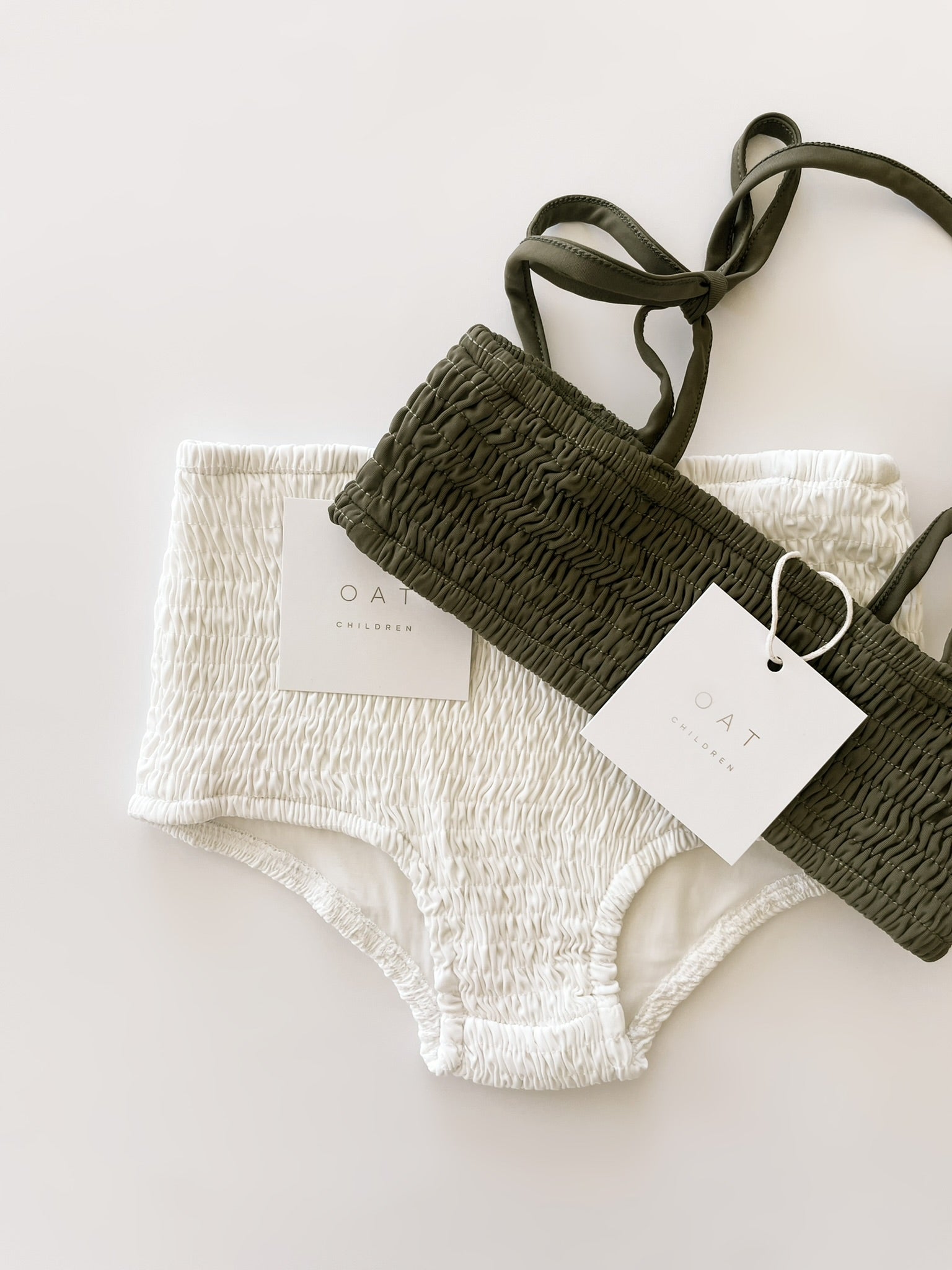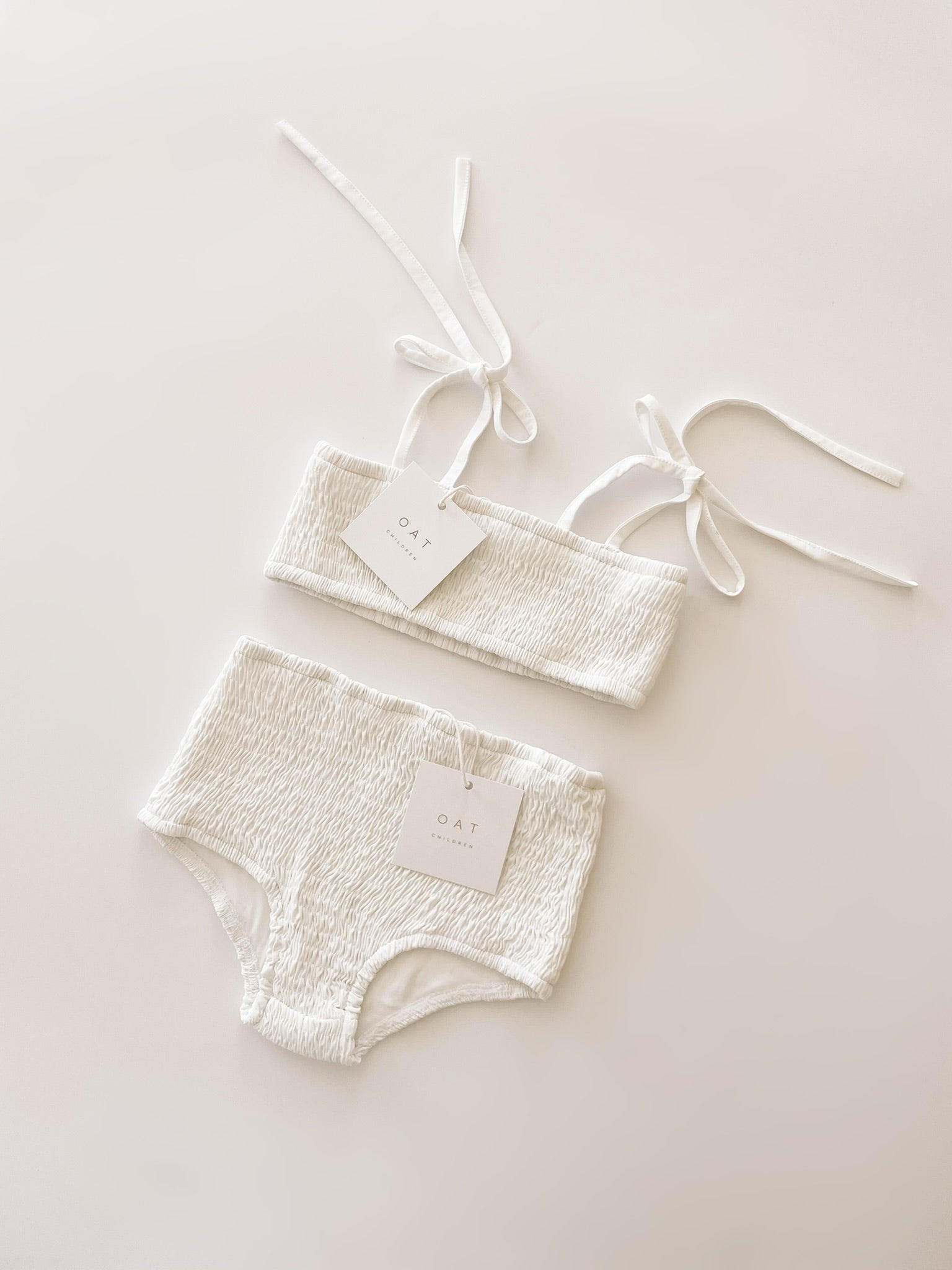 Summertime dreams! These smocked High Waisted bikini bottoms are the perfect swimmies for their summer wardrobe. An absolutely timeless capsule piece made for beach days and pool lounging. Made of soft material and fully lined for ultimate comfort and quality. The top and bottoms have an amazing amount of stretch making them extremely versatile.