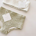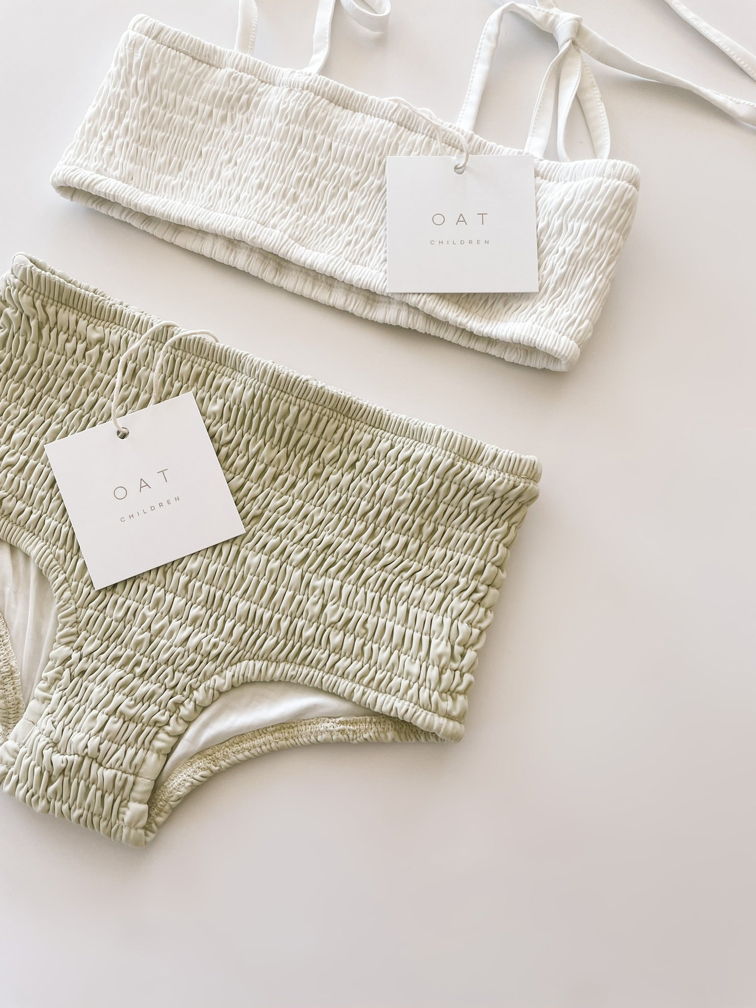 Summertime dreams! These smocked High Waisted bikini bottoms are the perfect swimmies for their summer wardrobe. An absolutely timeless capsule piece made for beach days and pool lounging. Made of soft material and fully lined for ultimate comfort and quality. The top and bottoms have an amazing amount of stretch making them extremely versatile.