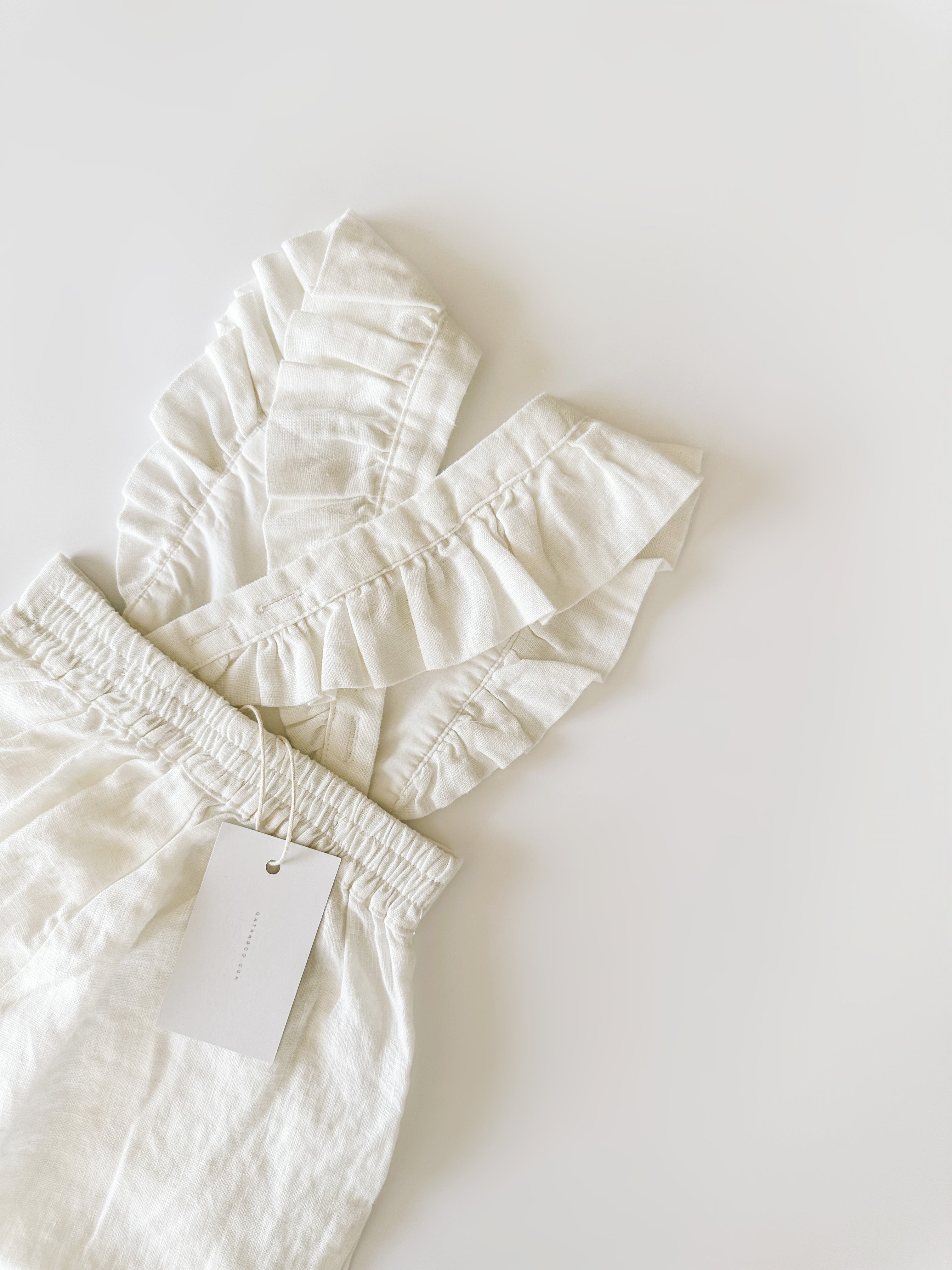Linen Flutter Sleeve Jumpsuit - Ivory