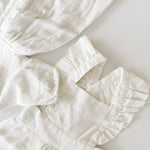 Our linen jumpsuits come with 4-6 button holes that make it easy to adjust the jumper to fit your little one's body. These pieces fit true to size. Order your little's normal size.