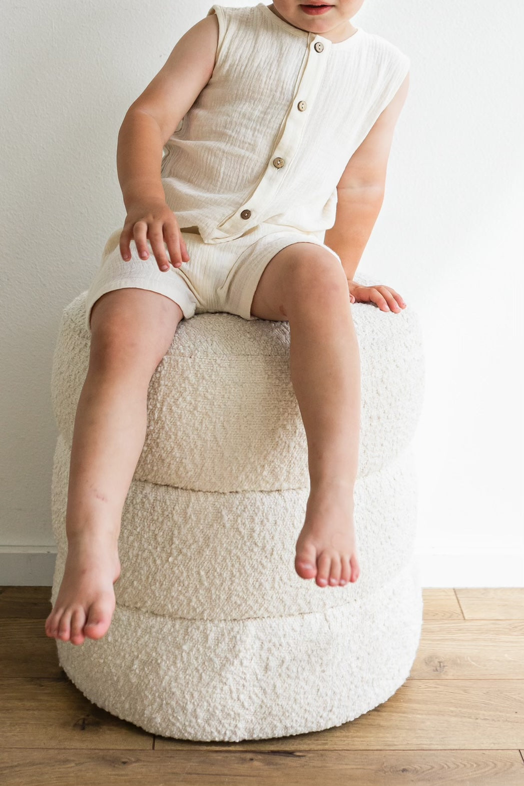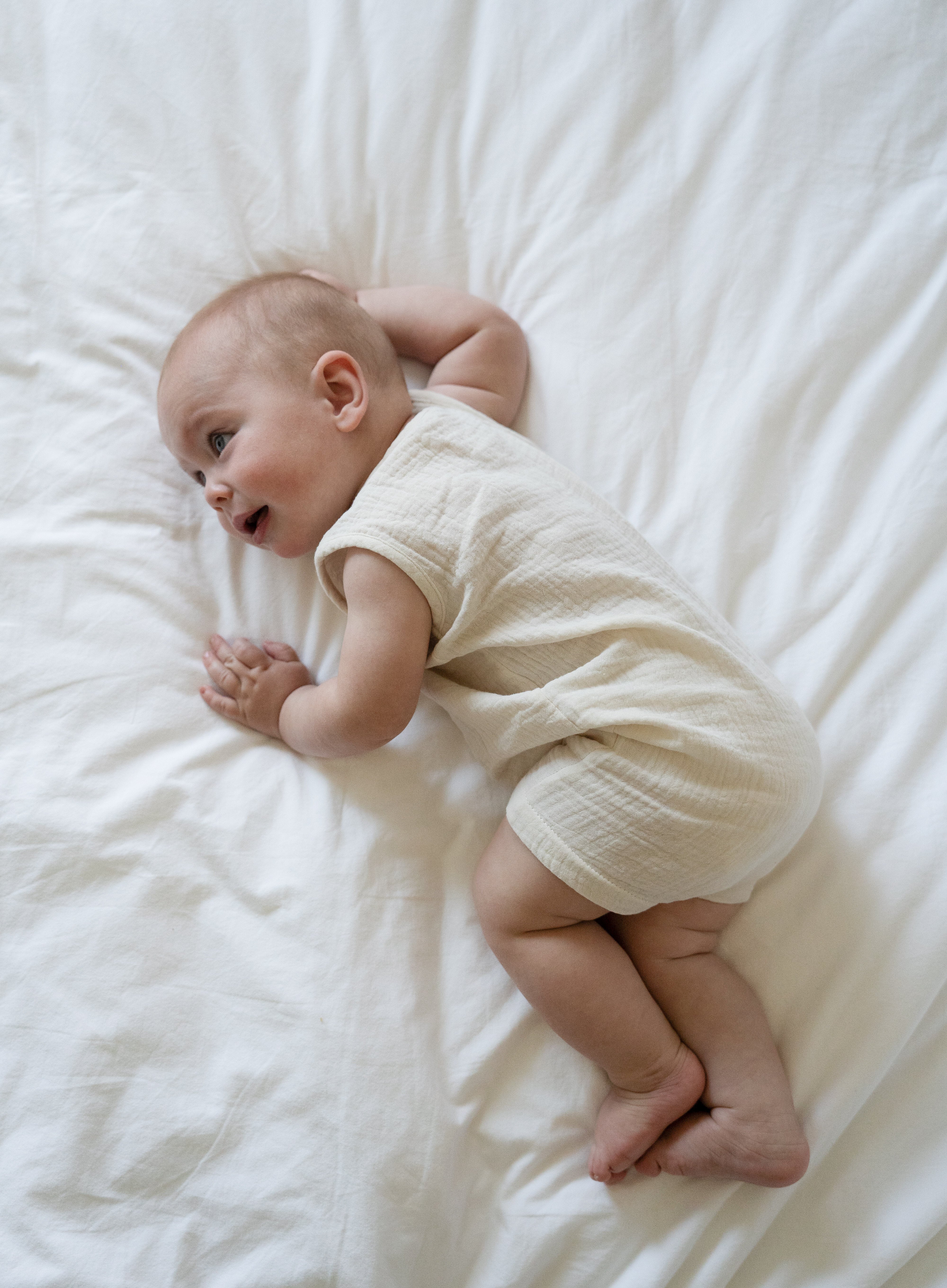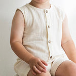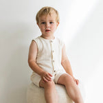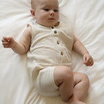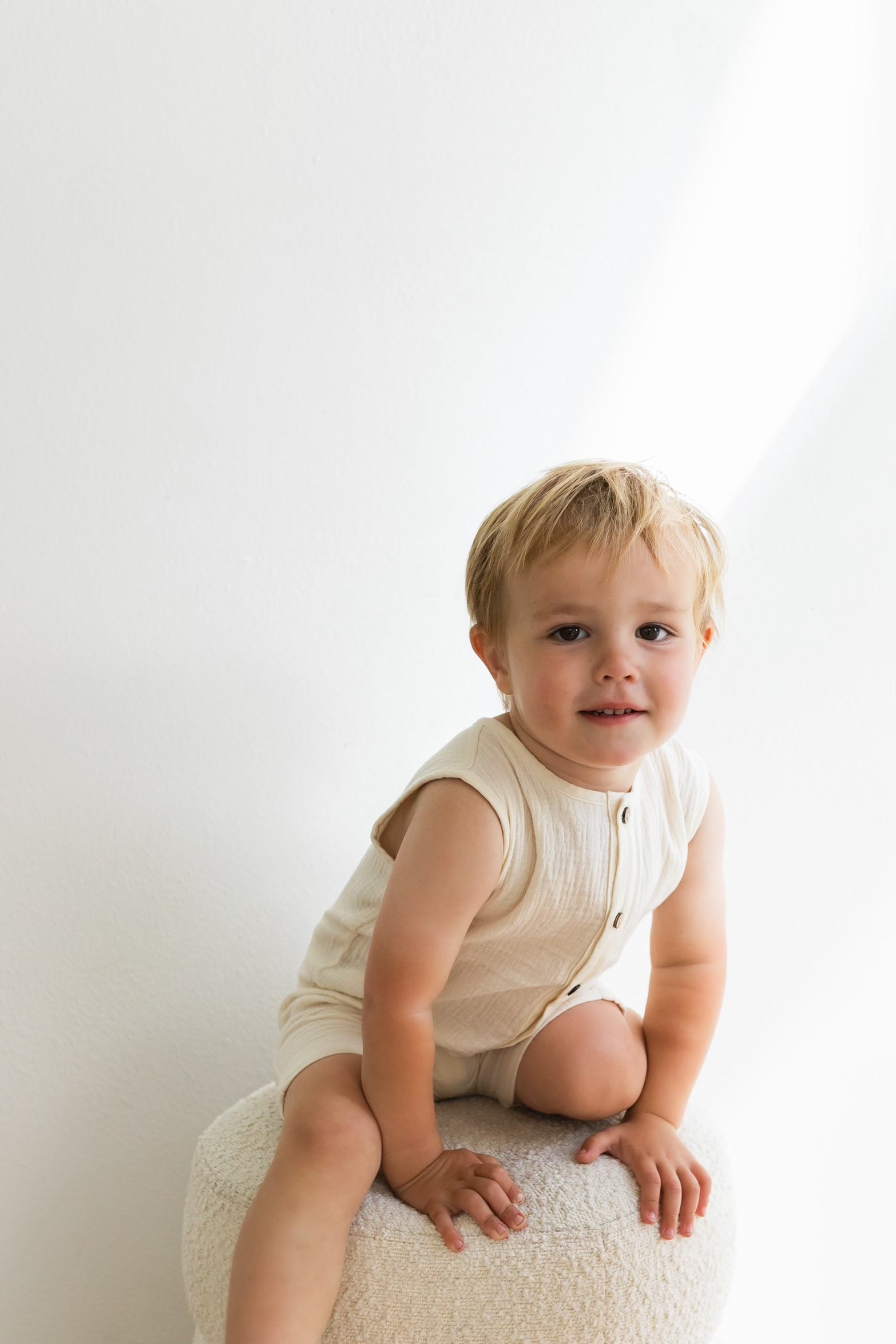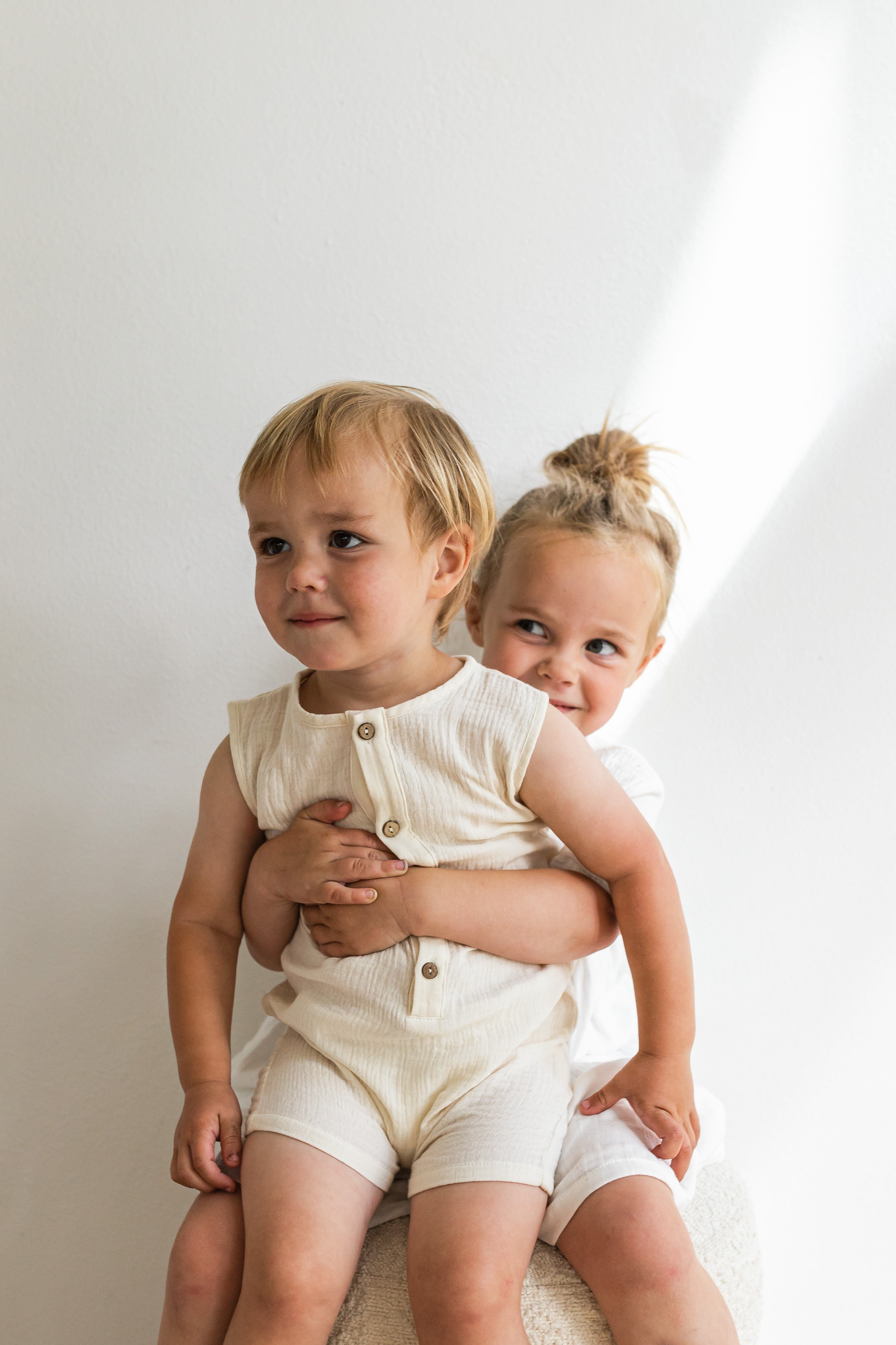 This muslin romper was made with your child’s comfort in mind. Whether running around in the warm sunshine or resting after a long day of play, this soft lightweight material will follow your child’s every move. Made of 100% muslin cotton, features wooden buttons down the front and provides truly effortless style.