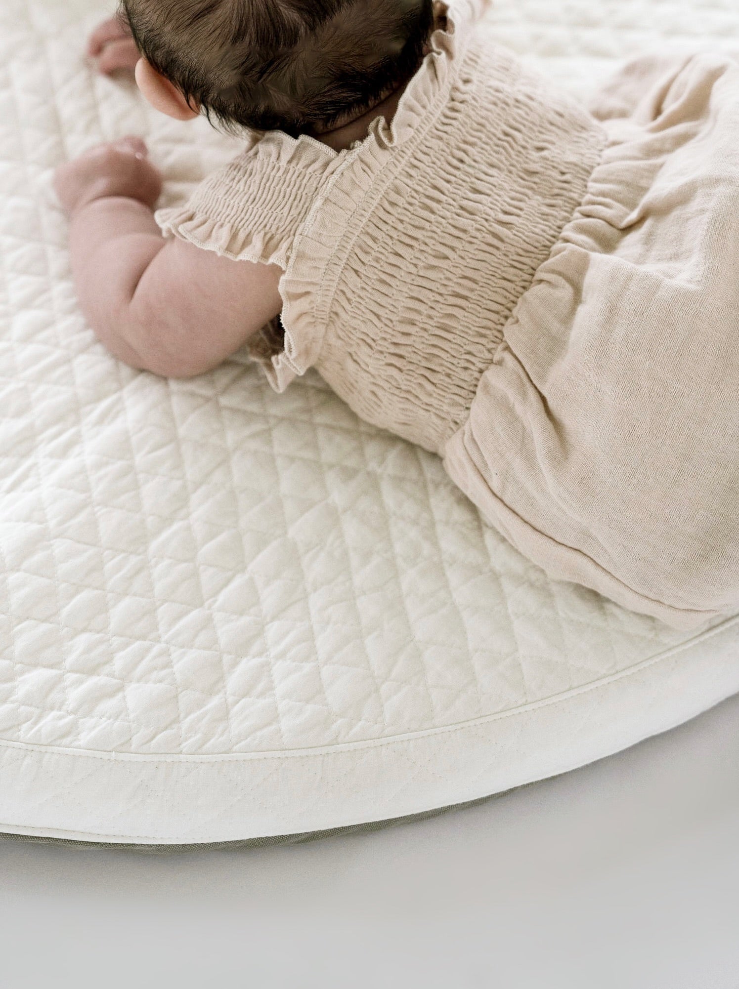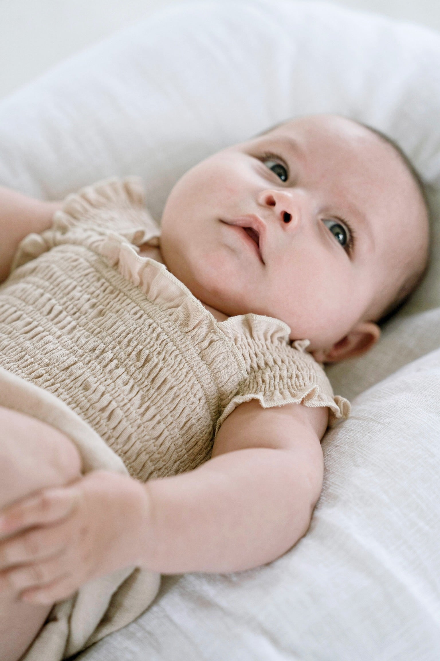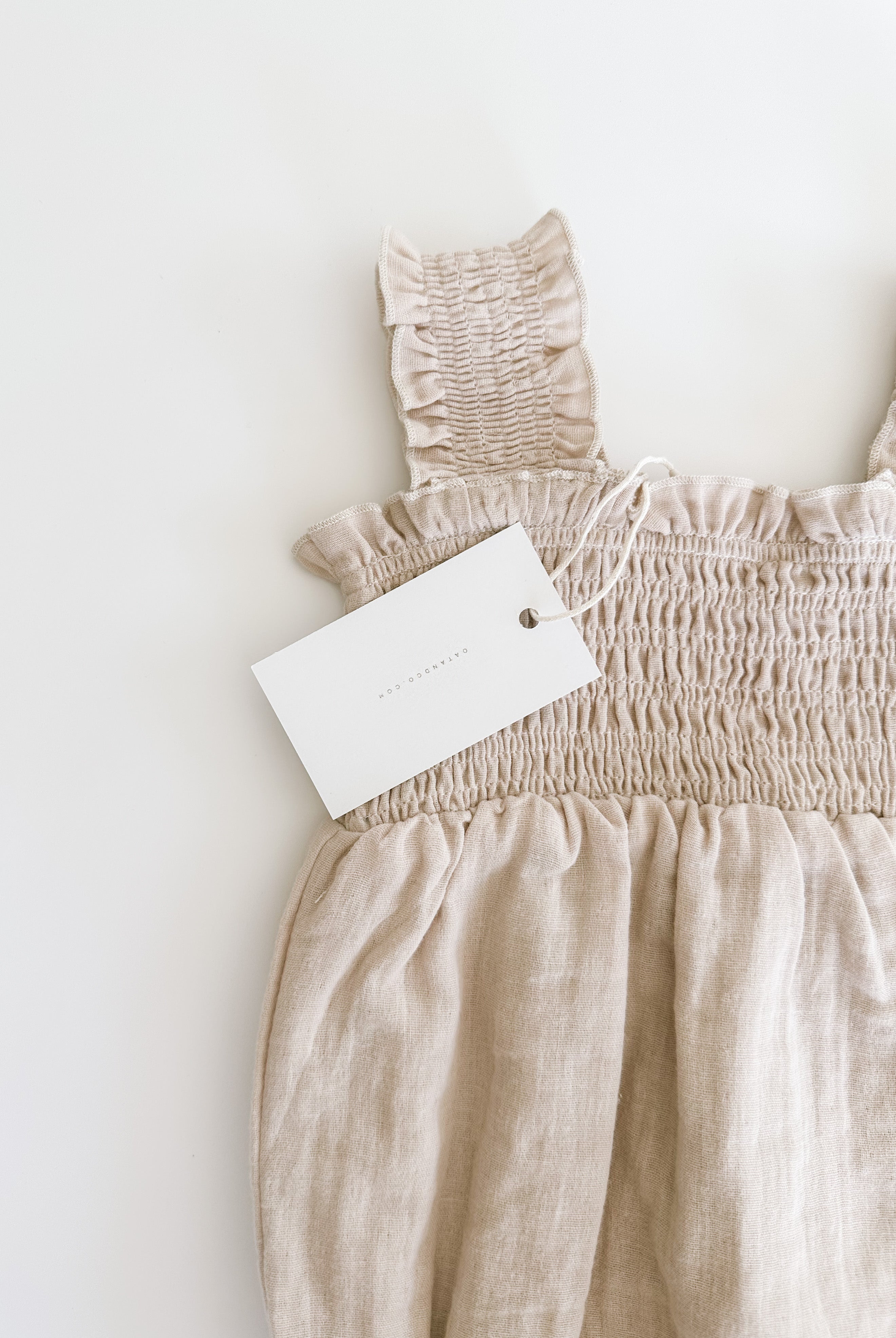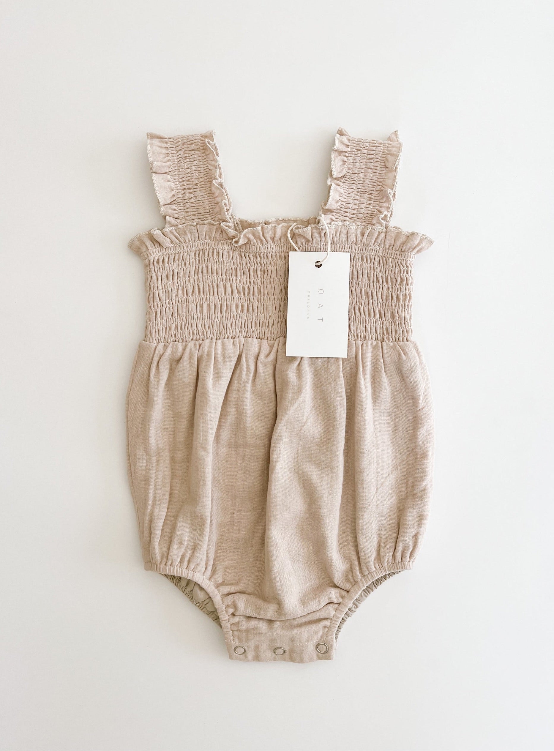 This vintage inspired smocked romper is the perfect staple piece to add to your little one’s wardrobe. Made with 100% muslin cotton and fully lined for your baby’s comfort, this romper is sure to become one of your favorites! Three snap buttons on the bottom ensure fast and easy changes to make your life that much easier. Enjoy watching your baby make countless memories in this beautiful piece!