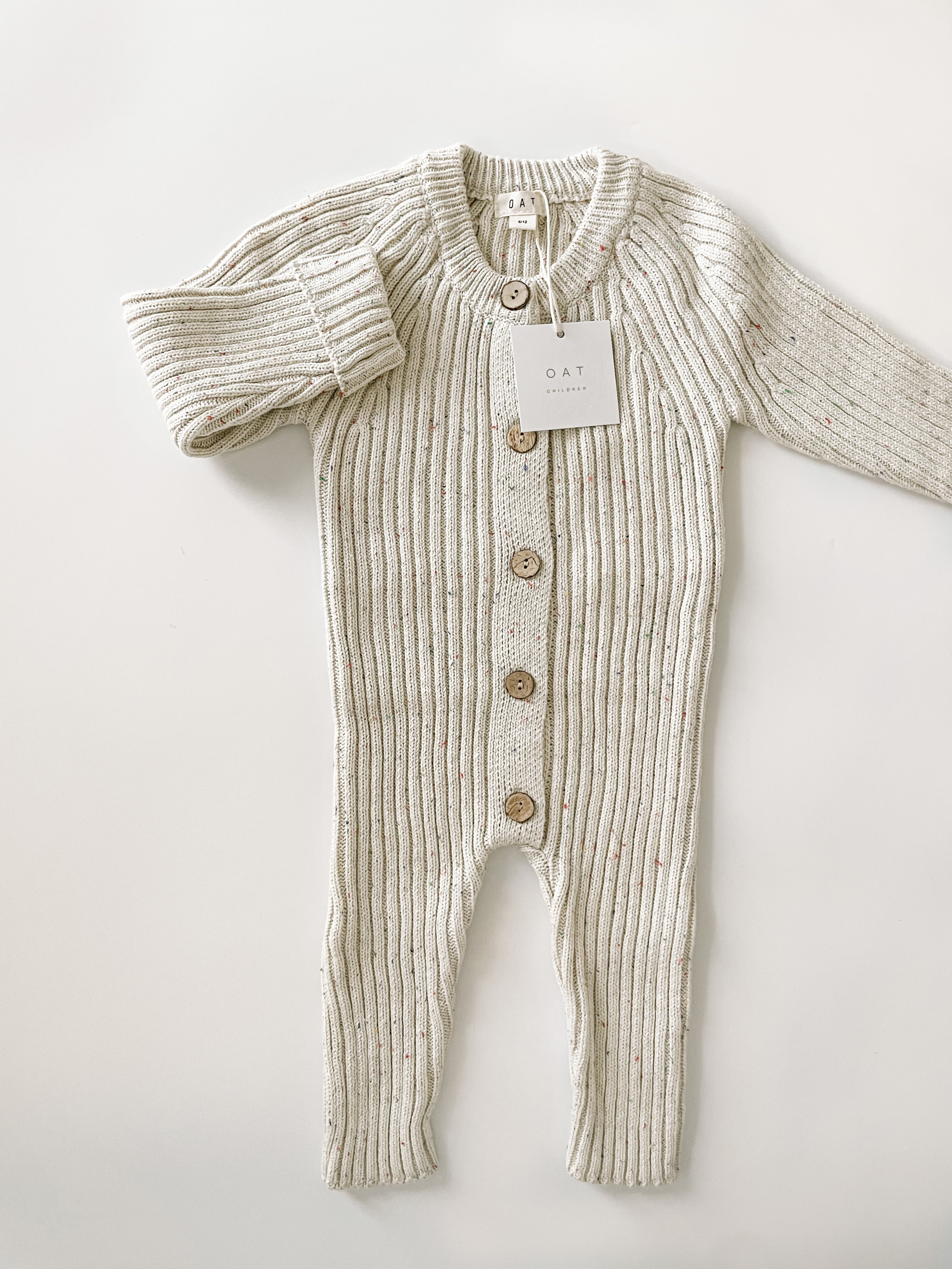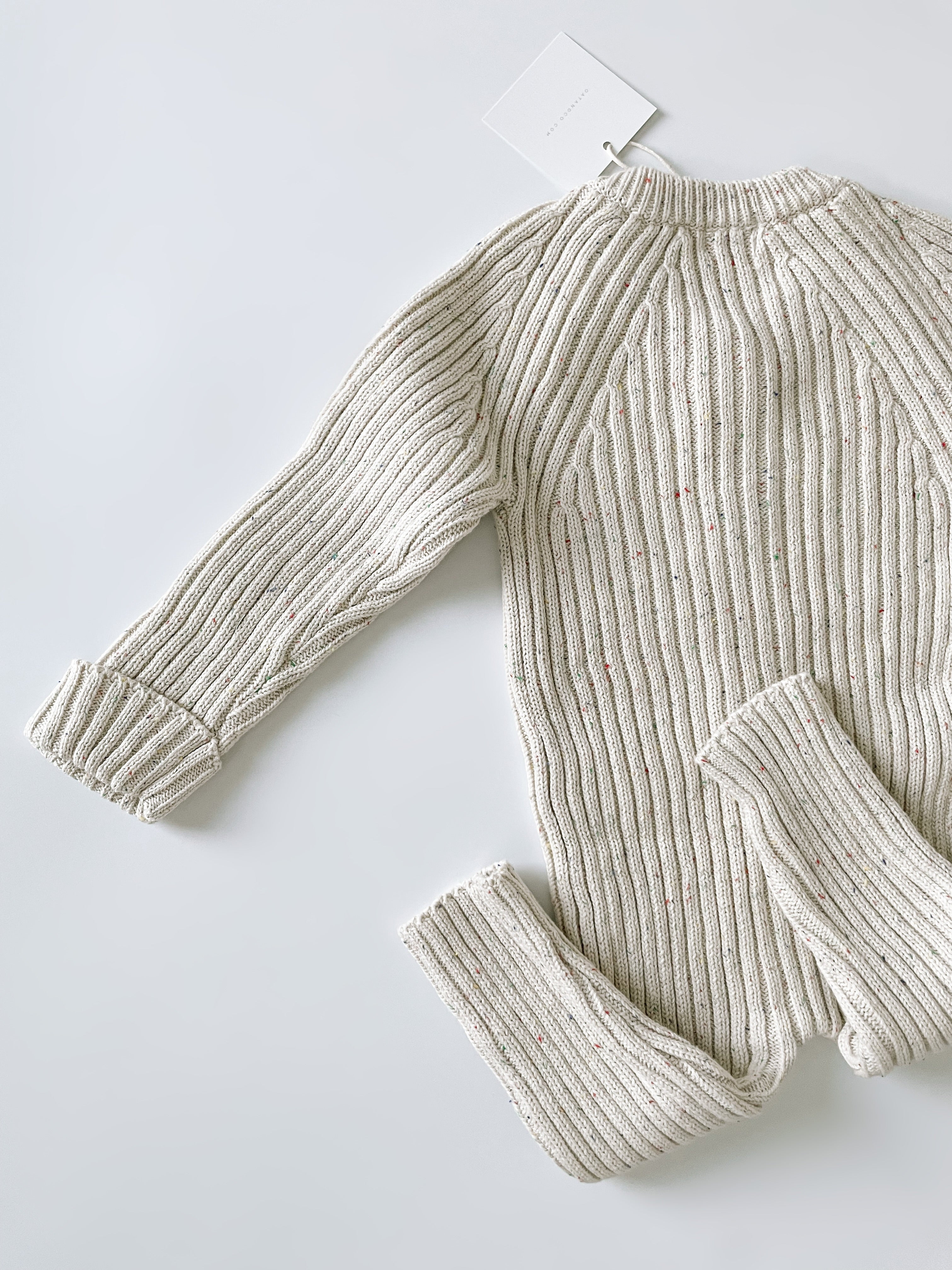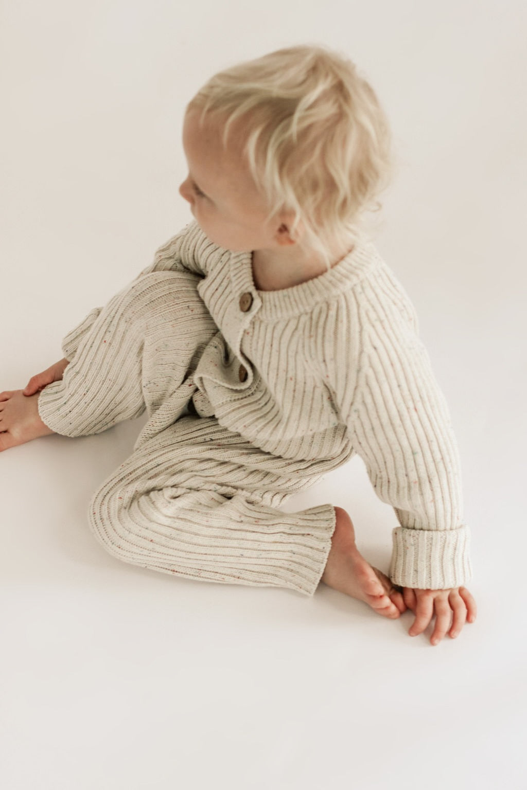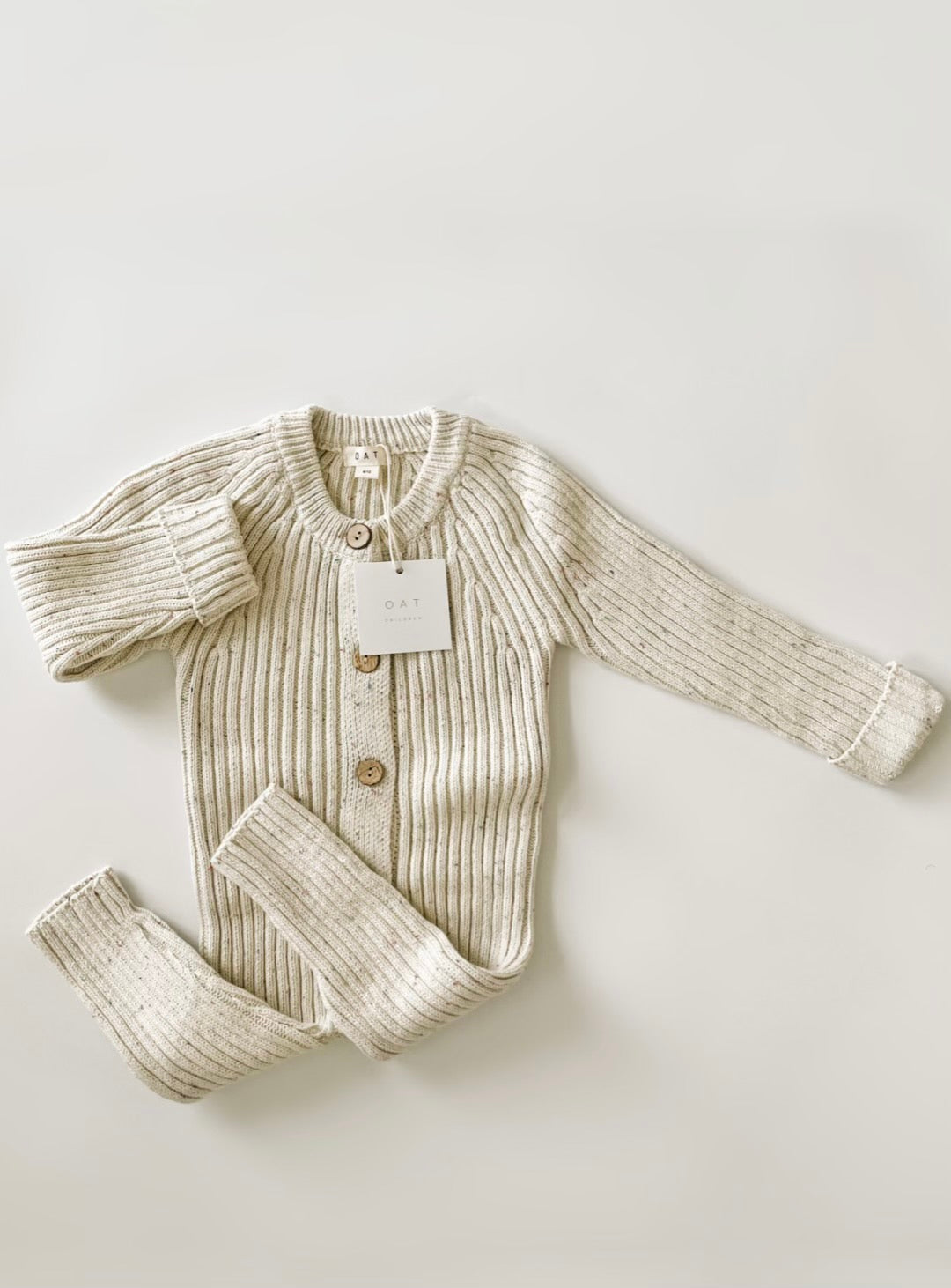 This ribbed knit playsuit is designed with chilly days in mind yet will easily transition as winter folds into spring. These premium cotton playsuits in Sprinkle Knit and Gray Marle are delightfully soft and superbly durable. They are sure to keep your kiddos warm and become the classic go to outfit in their wardrobe. Wear alone or bundled up.