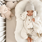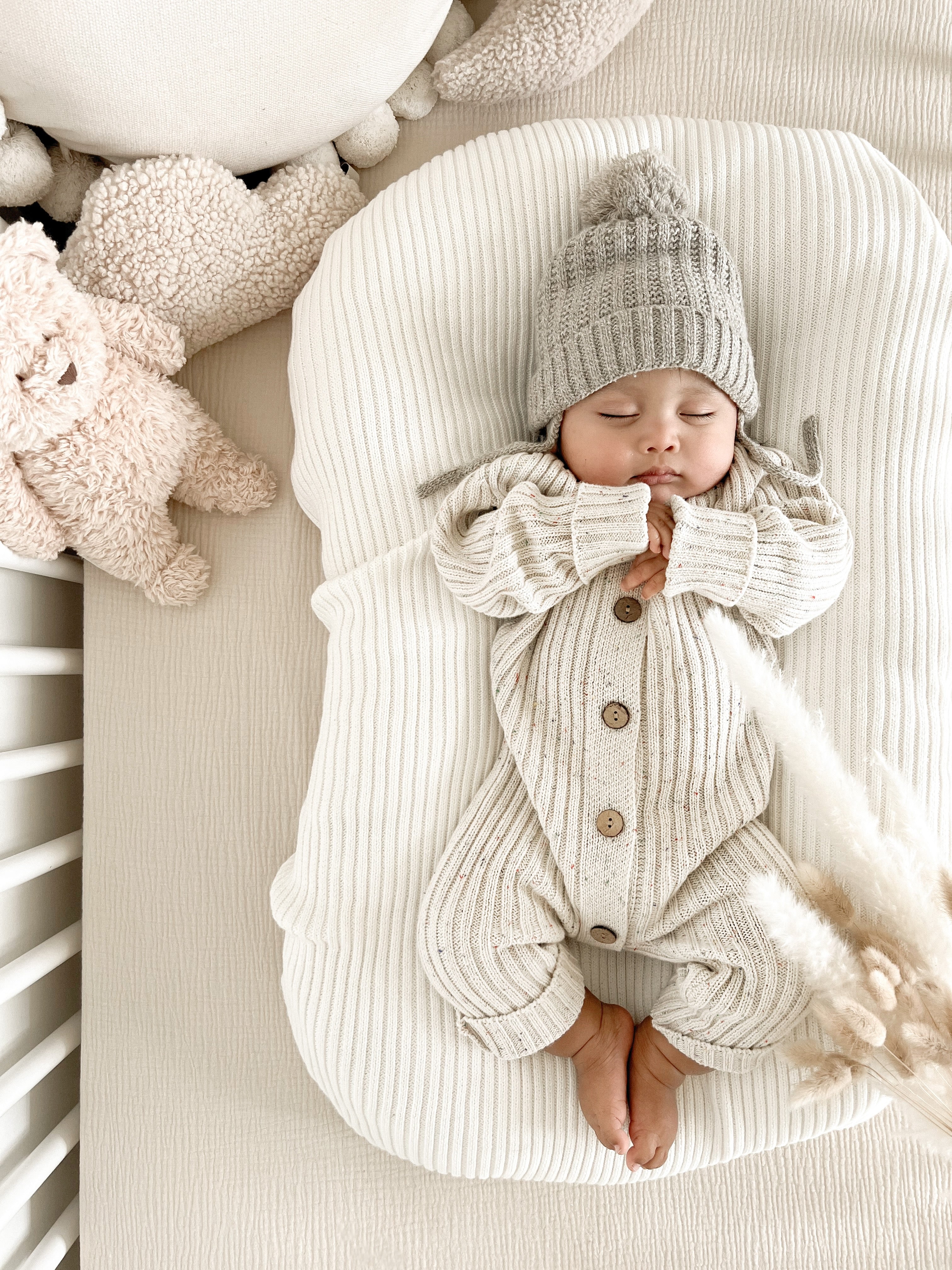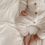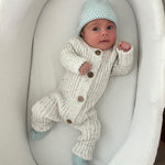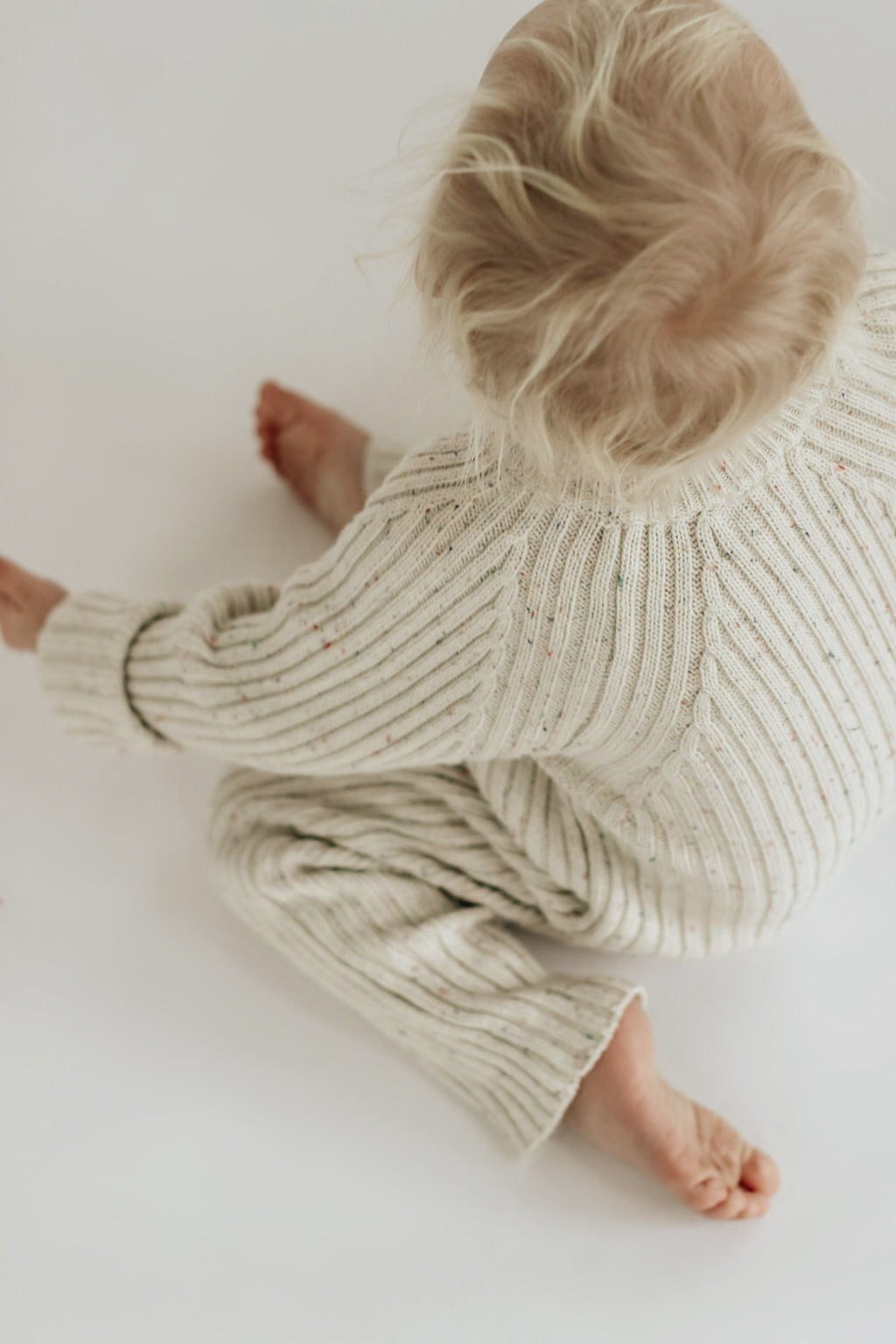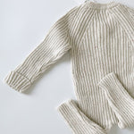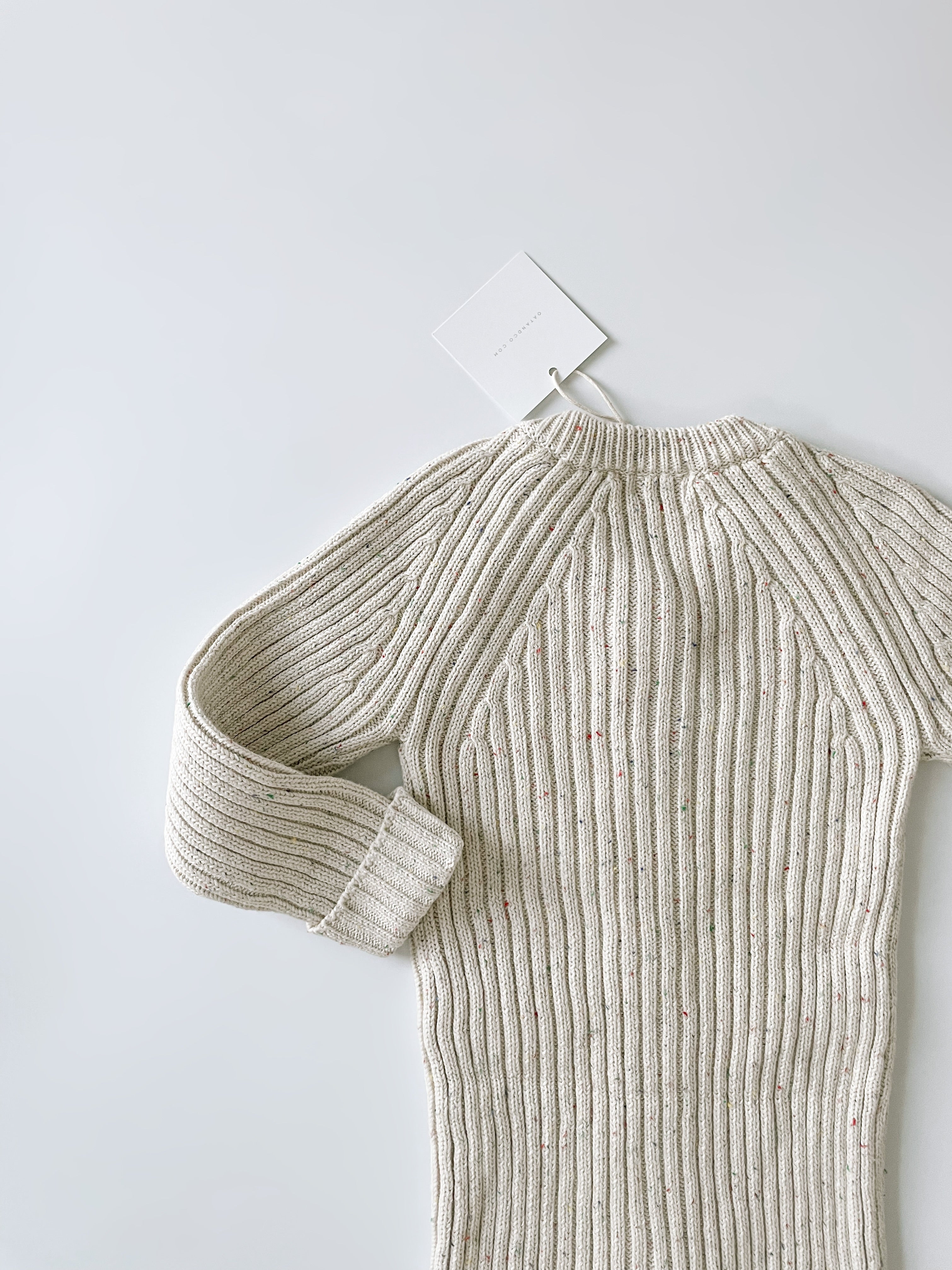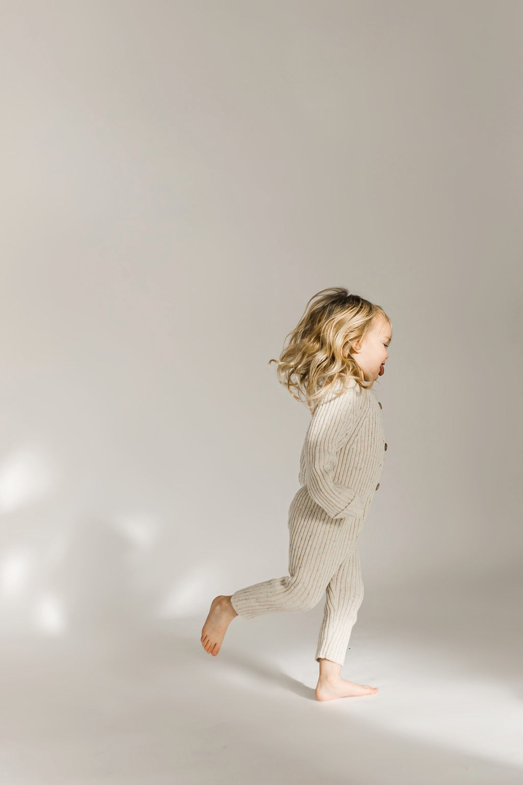 This ribbed knit playsuit is designed with chilly days in mind yet will easily transition as winter folds into spring. These premium cotton playsuits in Sprinkle Knit and Gray Marle are delightfully soft and superbly durable. They are sure to keep your kiddos warm and become the classic go to outfit in their wardrobe. Wear alone or bundled up.