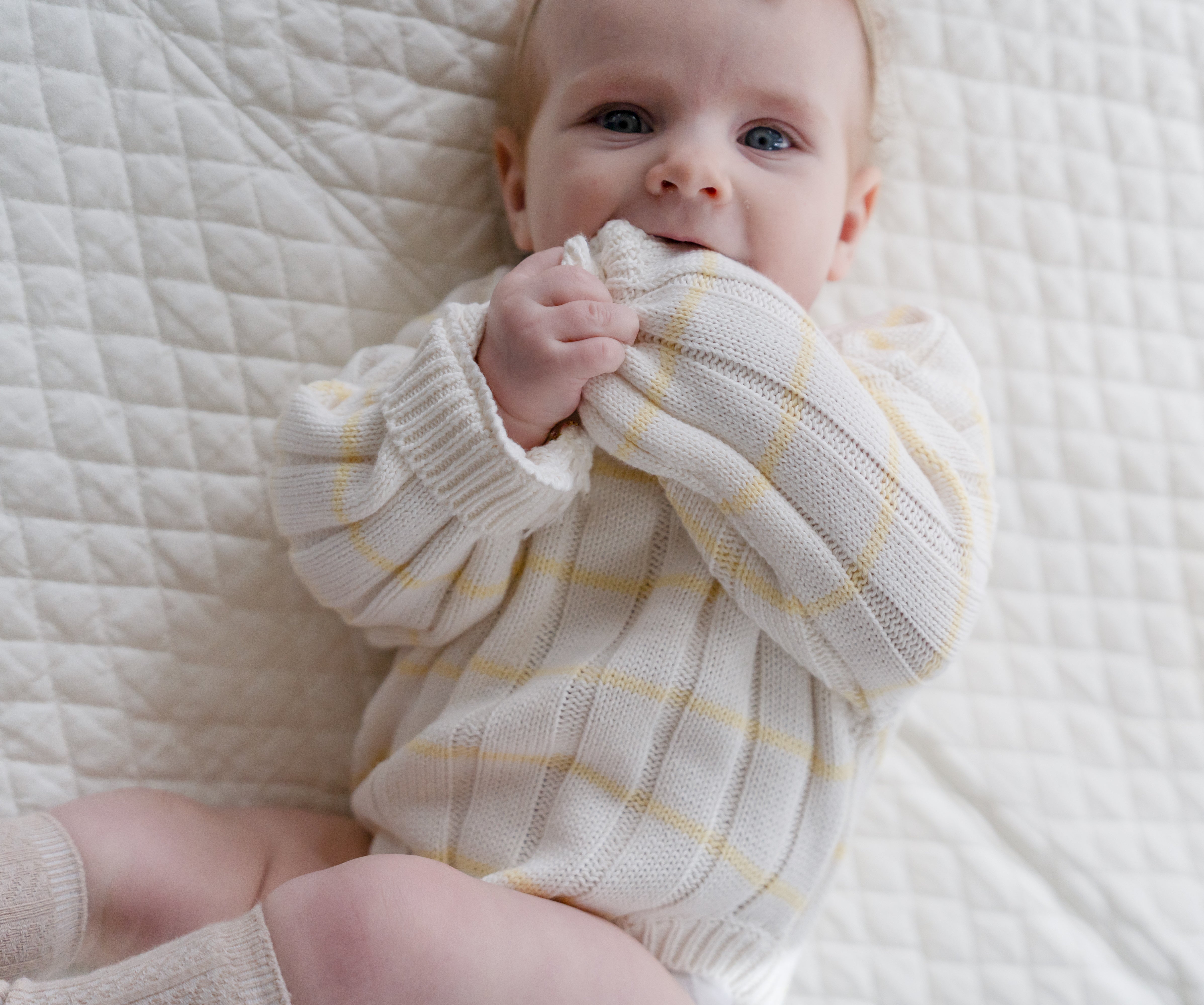 ‘Yellow Stripe’ Ribbed Knit Onesie